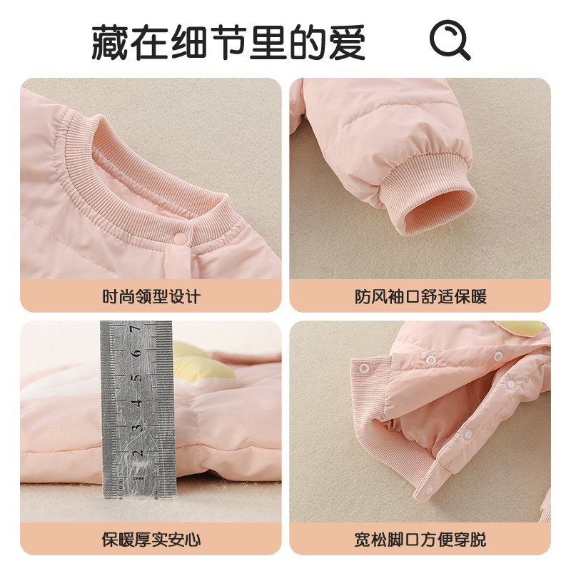 婴儿衣服冬装 新生女宝宝羽绒连体衣满月加厚保暖外出哈衣冬季