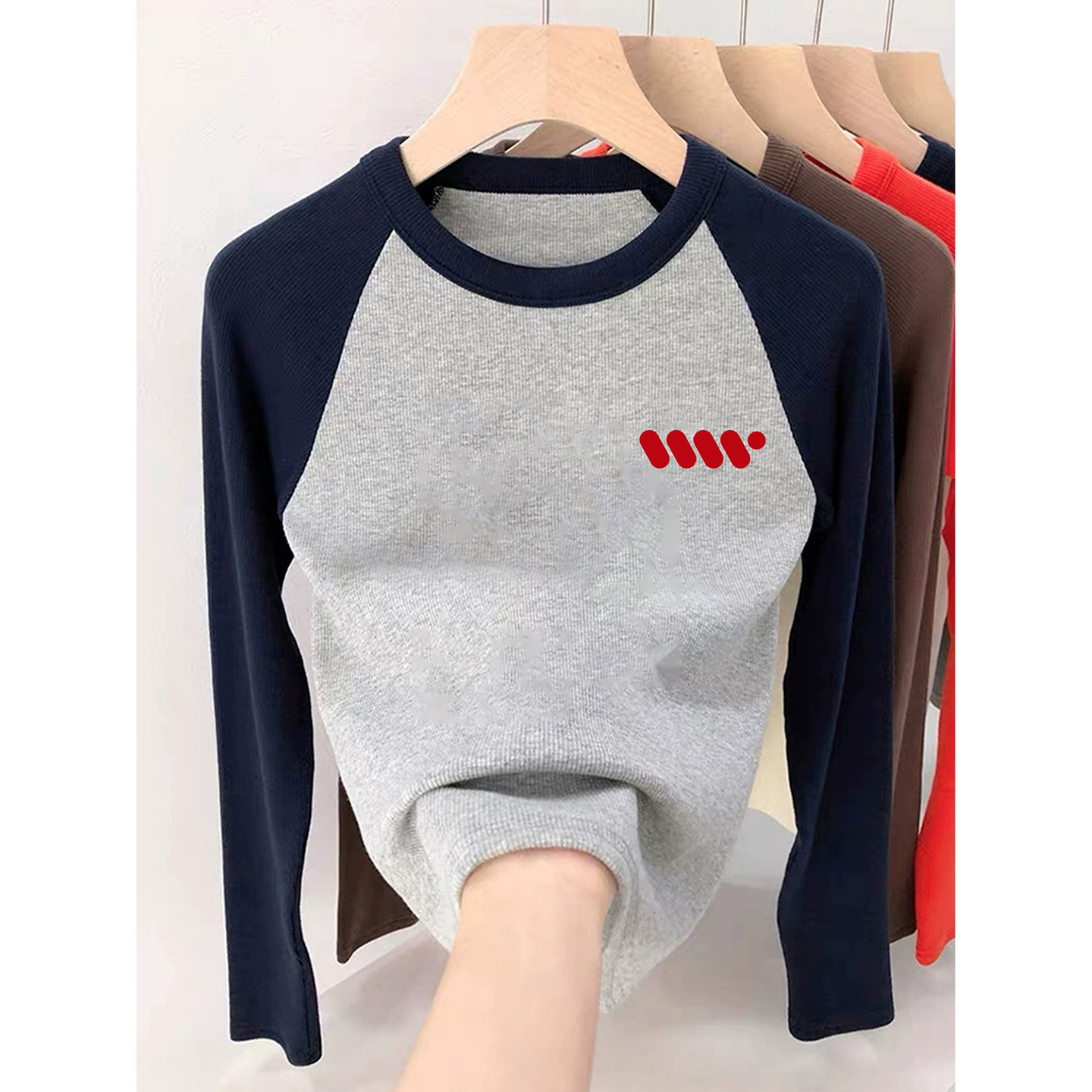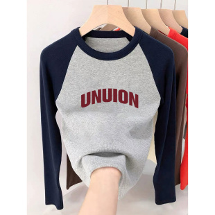 纯棉长袖 冬撞色上衣 T恤少女春秋初中高中学生外穿内搭宽松打底衫