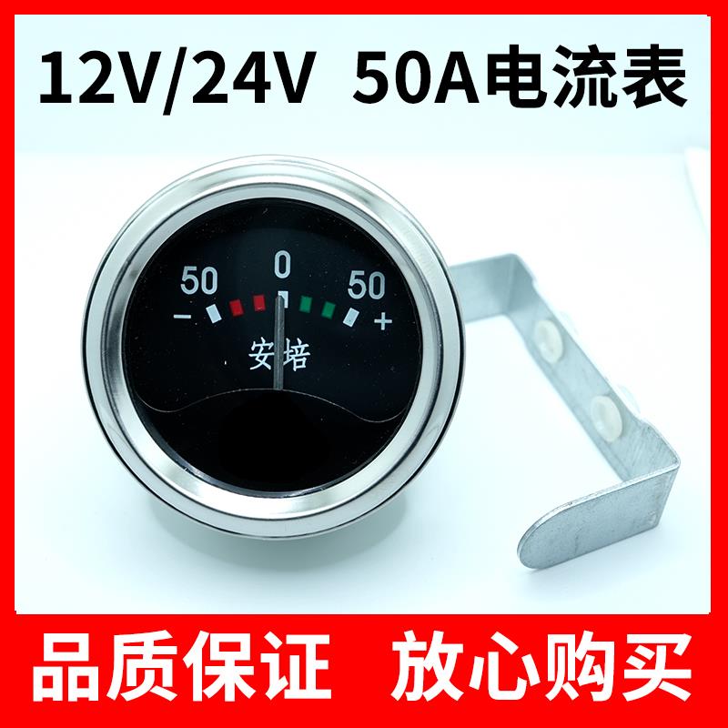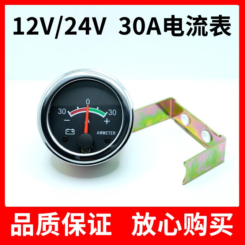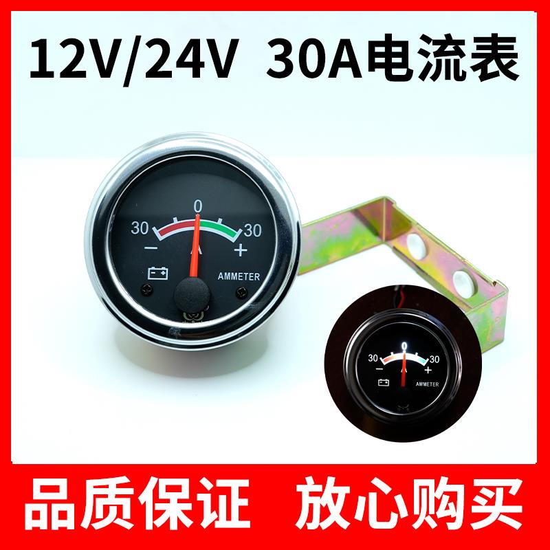 汽车农用车拖拉机电压电流表12V24V30A 50A发电机指针圆形电流表