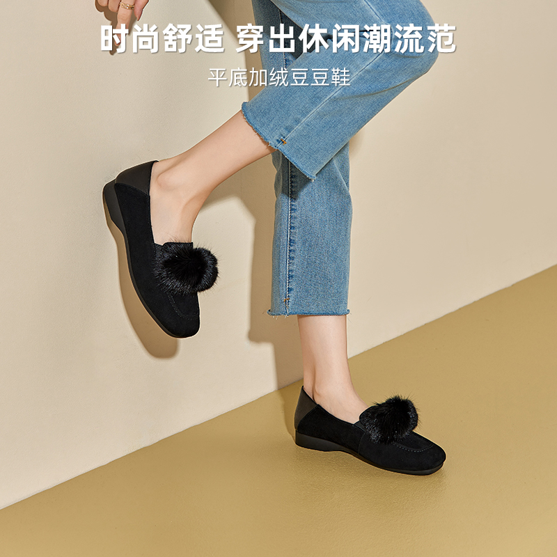 温柔风配裙子豆豆鞋 新款 女2024秋季 星期六真皮平底蝴蝶结浅口单鞋