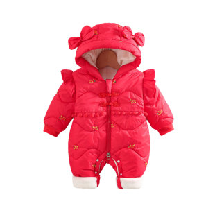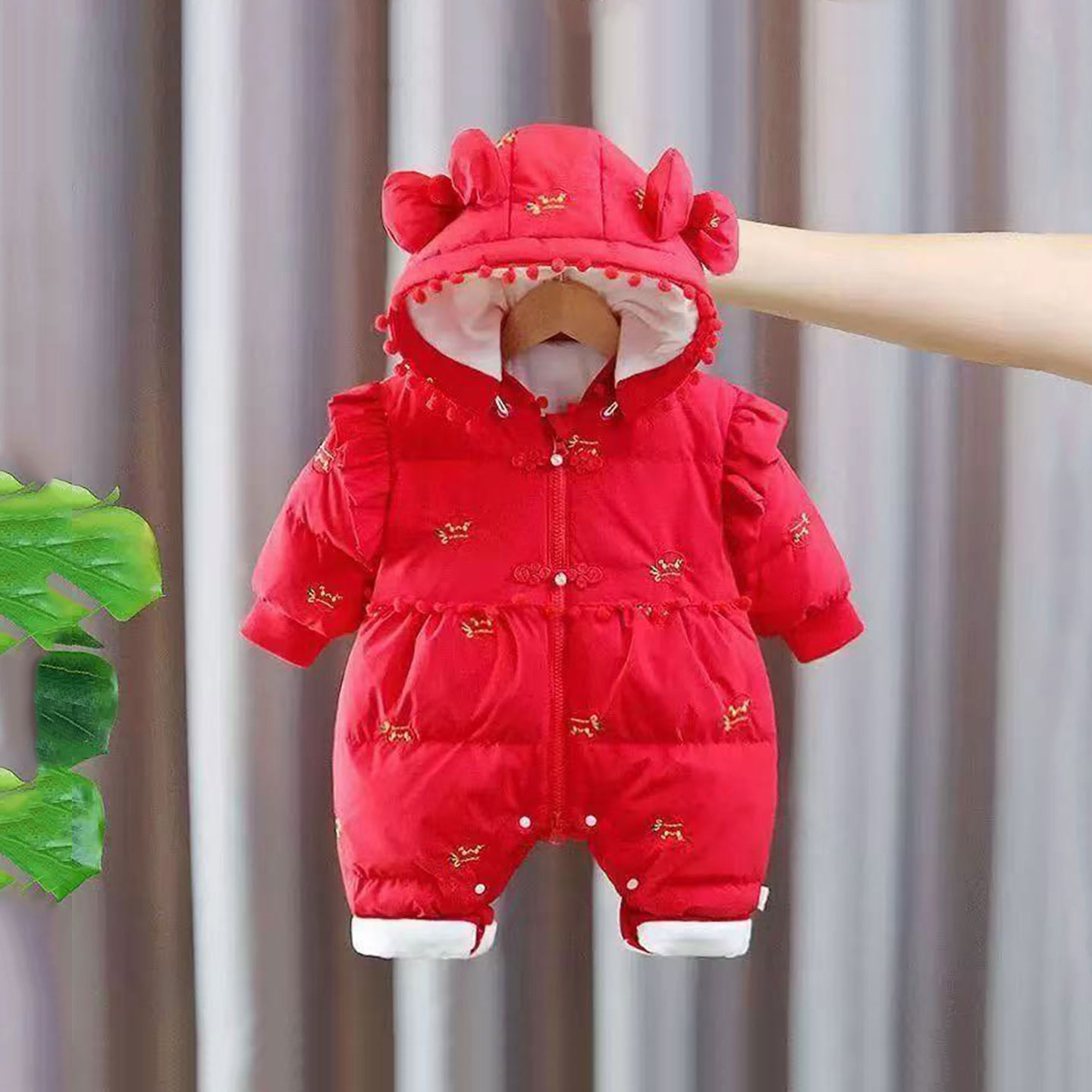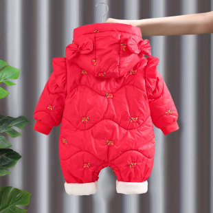 新年外出服 拜年服红色婴儿连体衣加厚冬季 小月龄宝宝冬装 2025新款