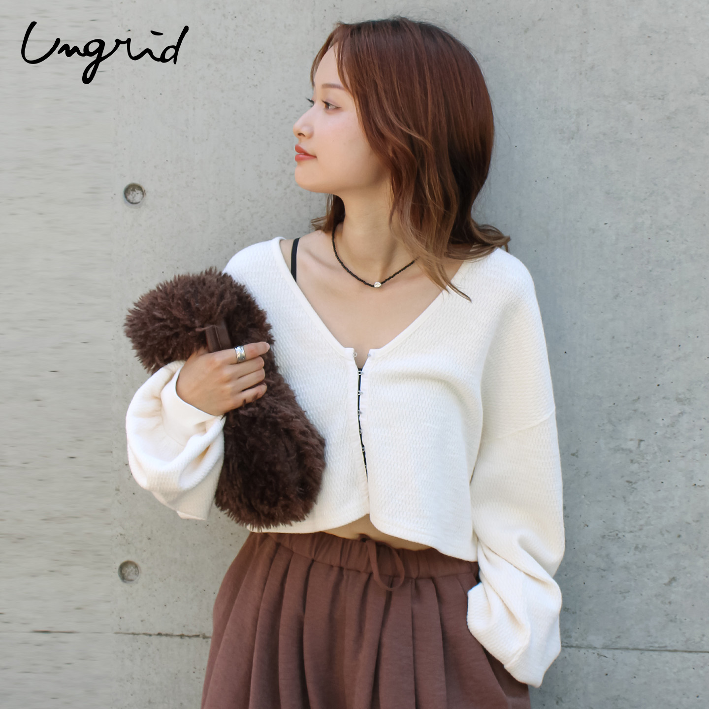 毛针织开衫 v领落肩长袖 1125529656 日系宽松短款 Ungrid25秋冬新品