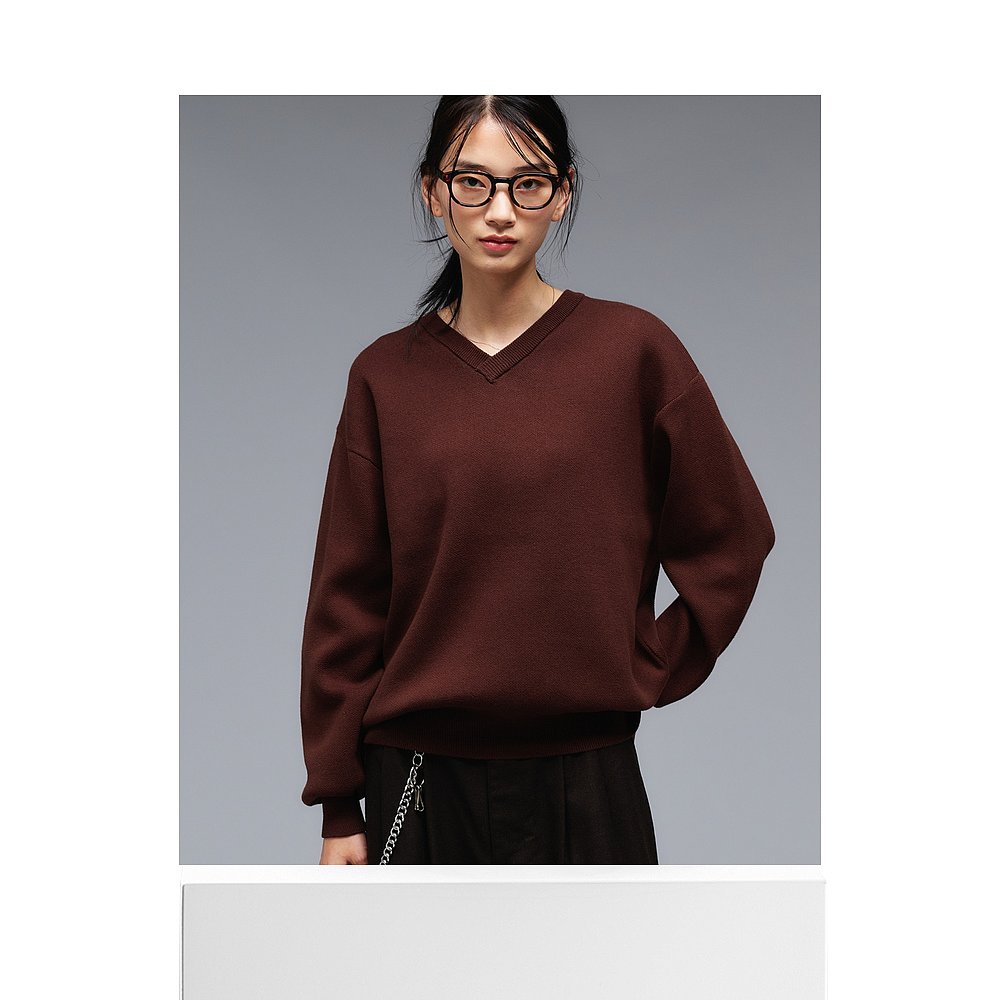 浅V领米兰罗纹针织衫 1h可退 男女同款 plain 宽松 日本直邮Adoon