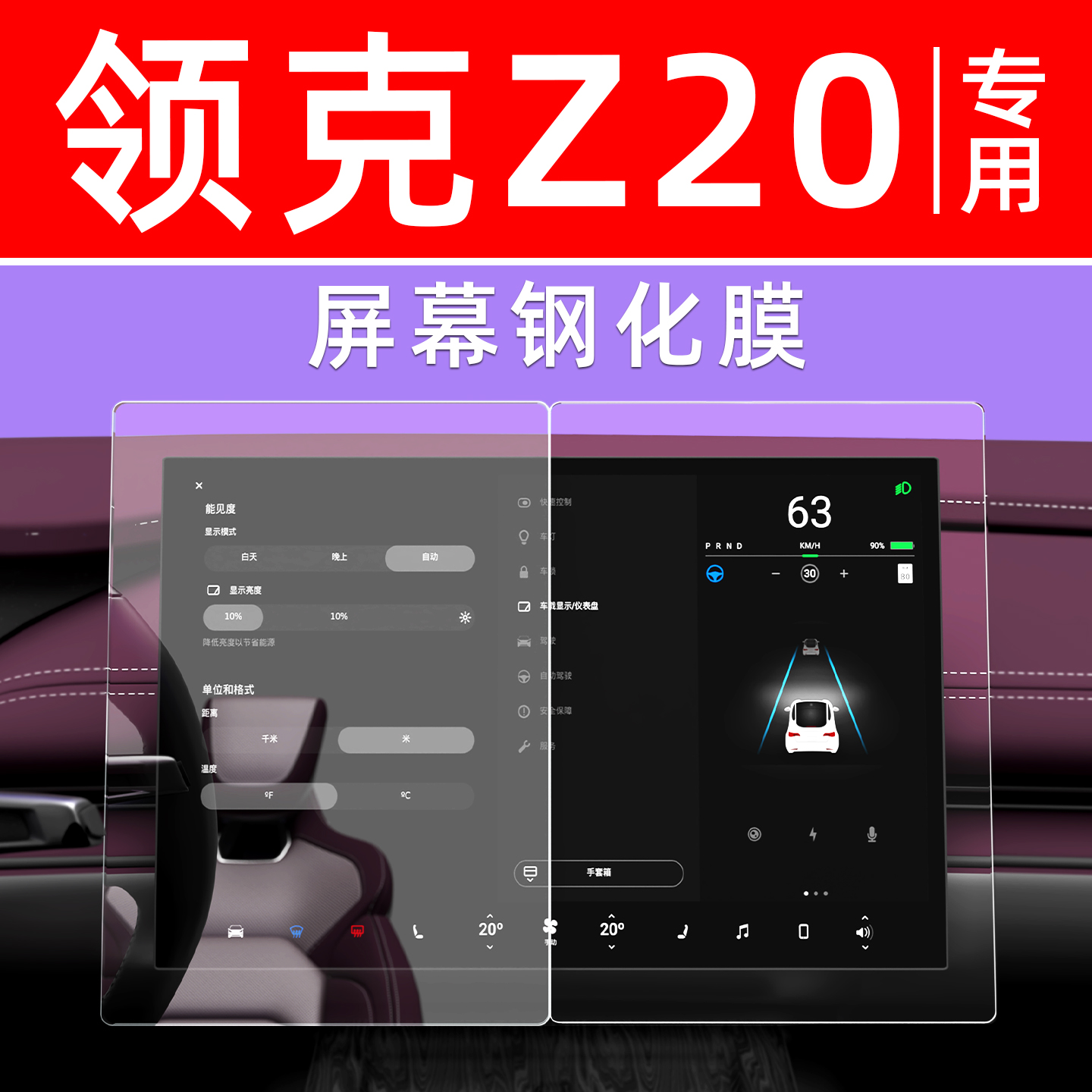 25款 领克Z20屏幕钢化膜中控导航车机膜仪表汽车用品显示屏保护膜