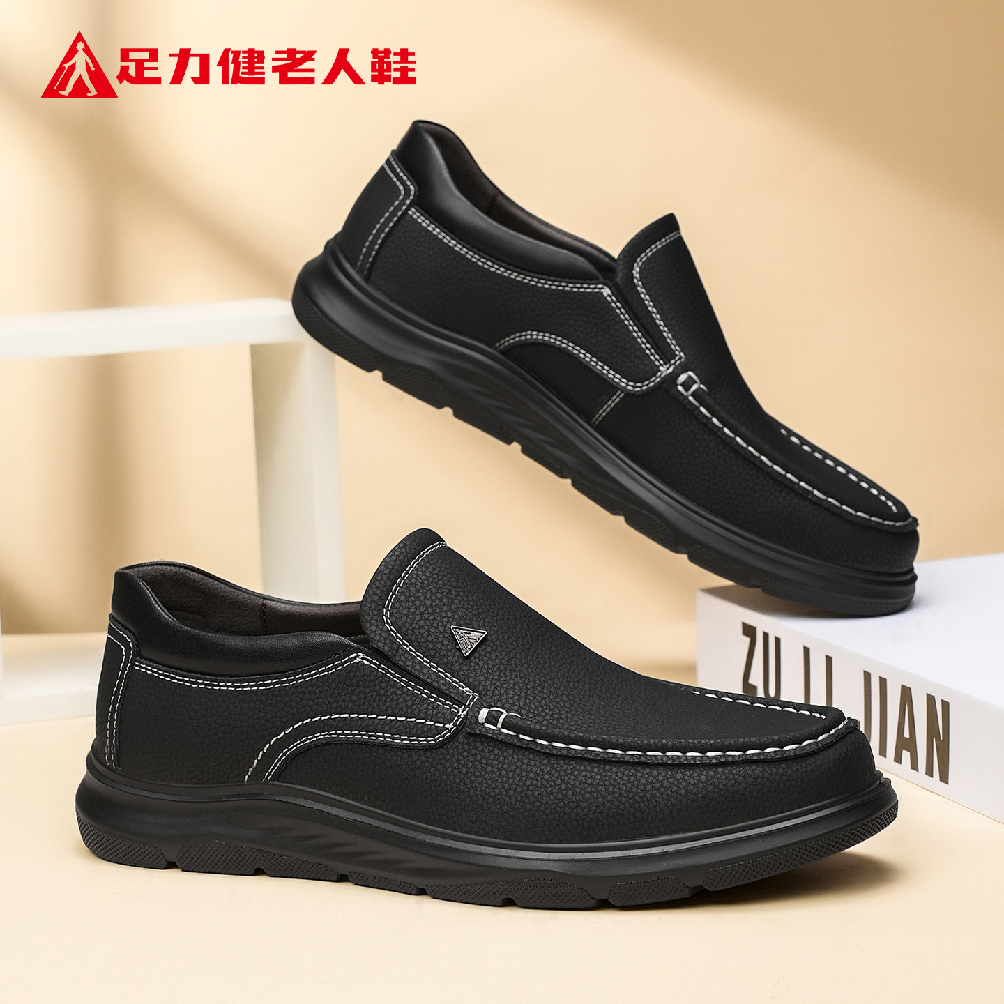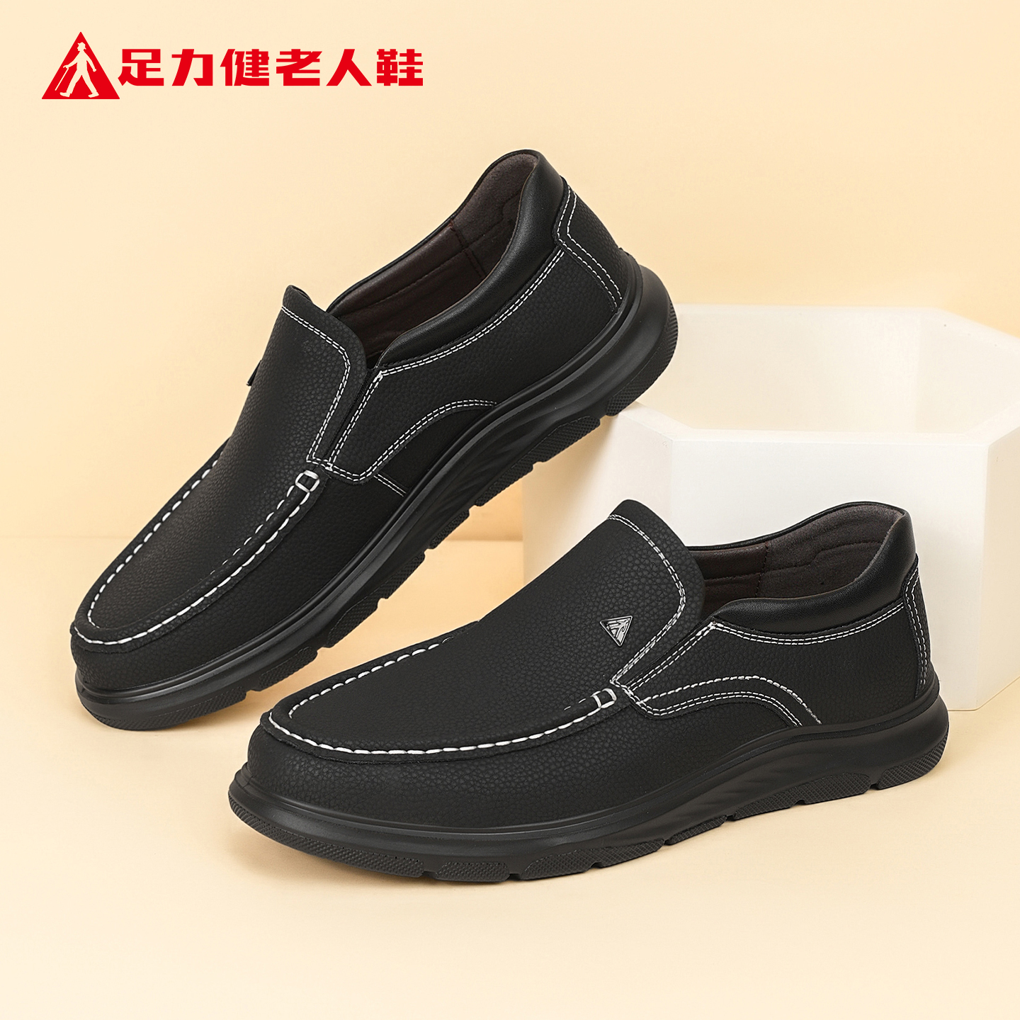 官方2025秋季 一脚蹬增高爸爸鞋 新款 休闲皮鞋 户外男士 足力健老人鞋