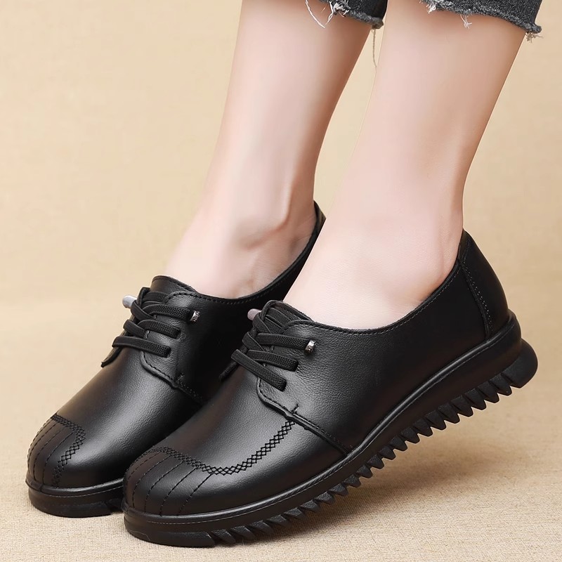 女软底上班一脚蹬老人防滑单鞋 妈妈鞋 中老年舒适不累脚真皮秋皮鞋
