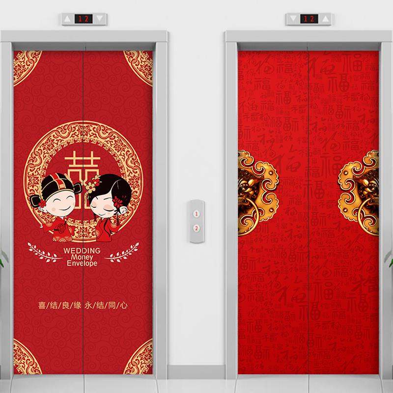 结婚电梯门喜字贴纸定制婚庆喜庆自粘喜庆防水酒店公寓门装 饰