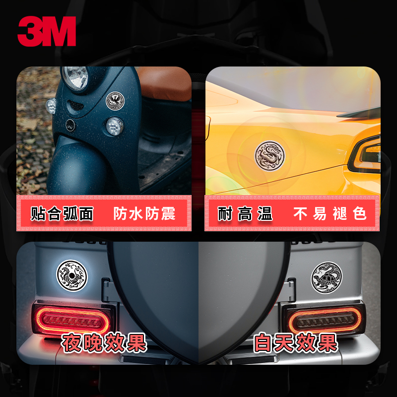 3M晶亮级汽车贴纸反光警示贴纸反光四方圣兽装 饰遮挡划痕贴纸
