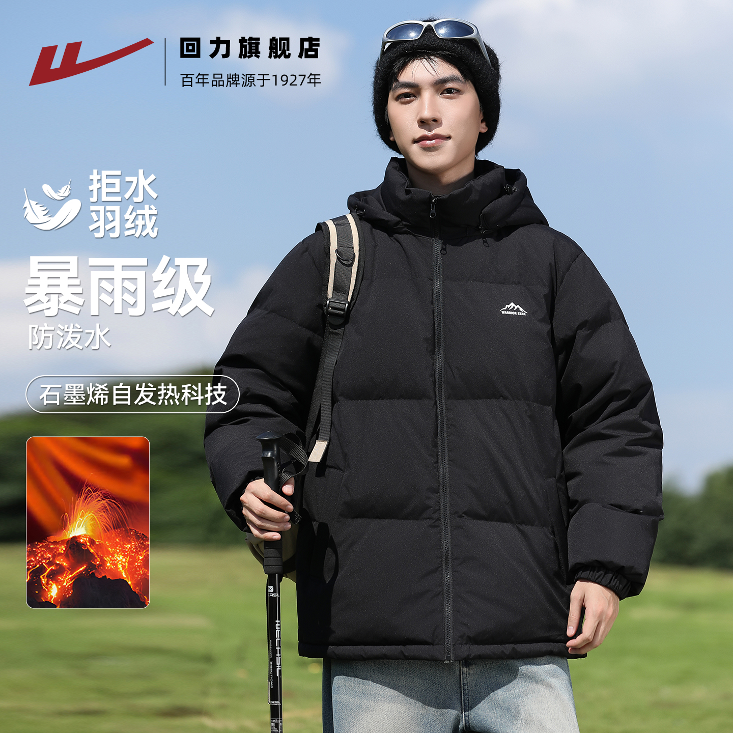 连帽情侣外套 加绒加厚保暖面包服短款 回力羽绒服男女2025冬季 新款