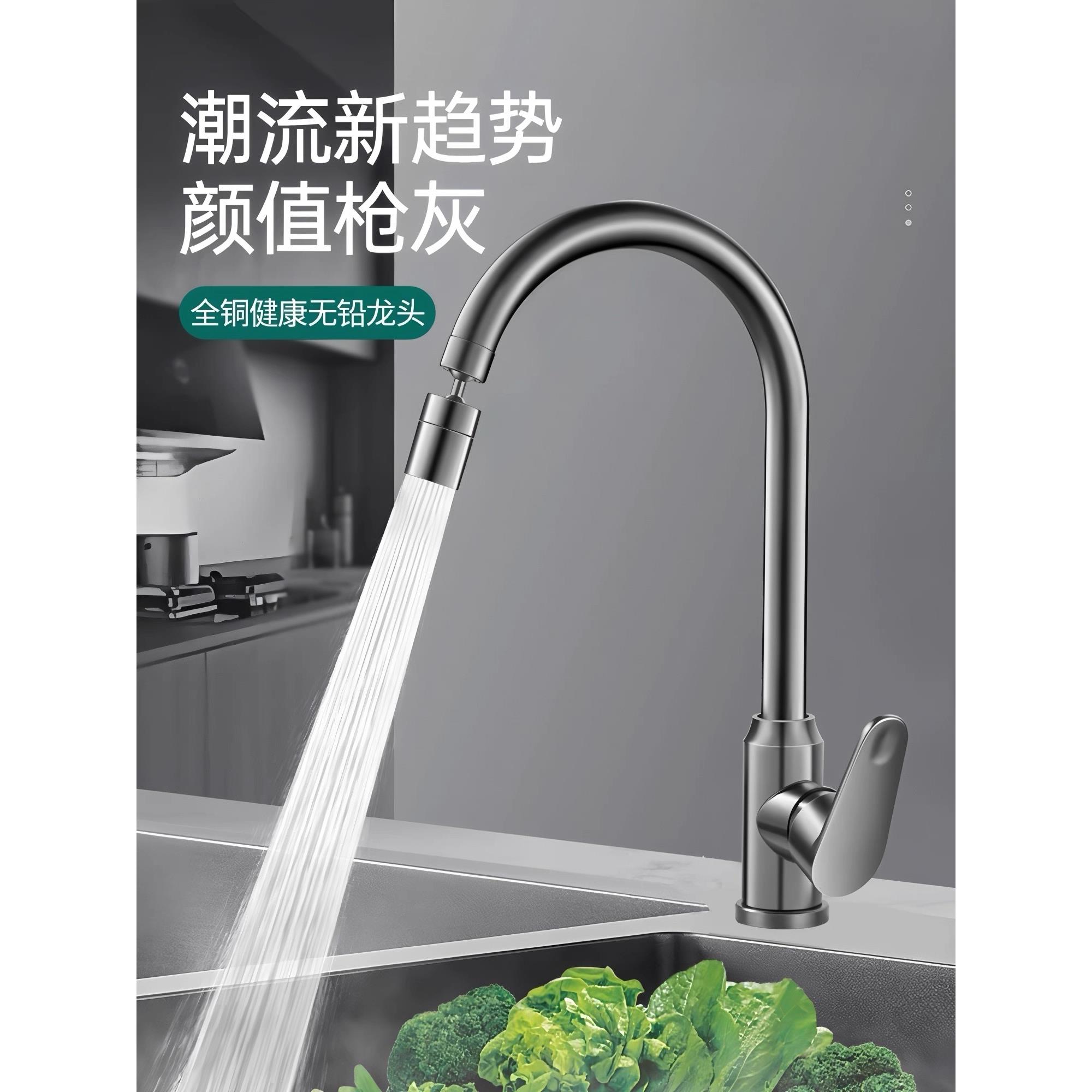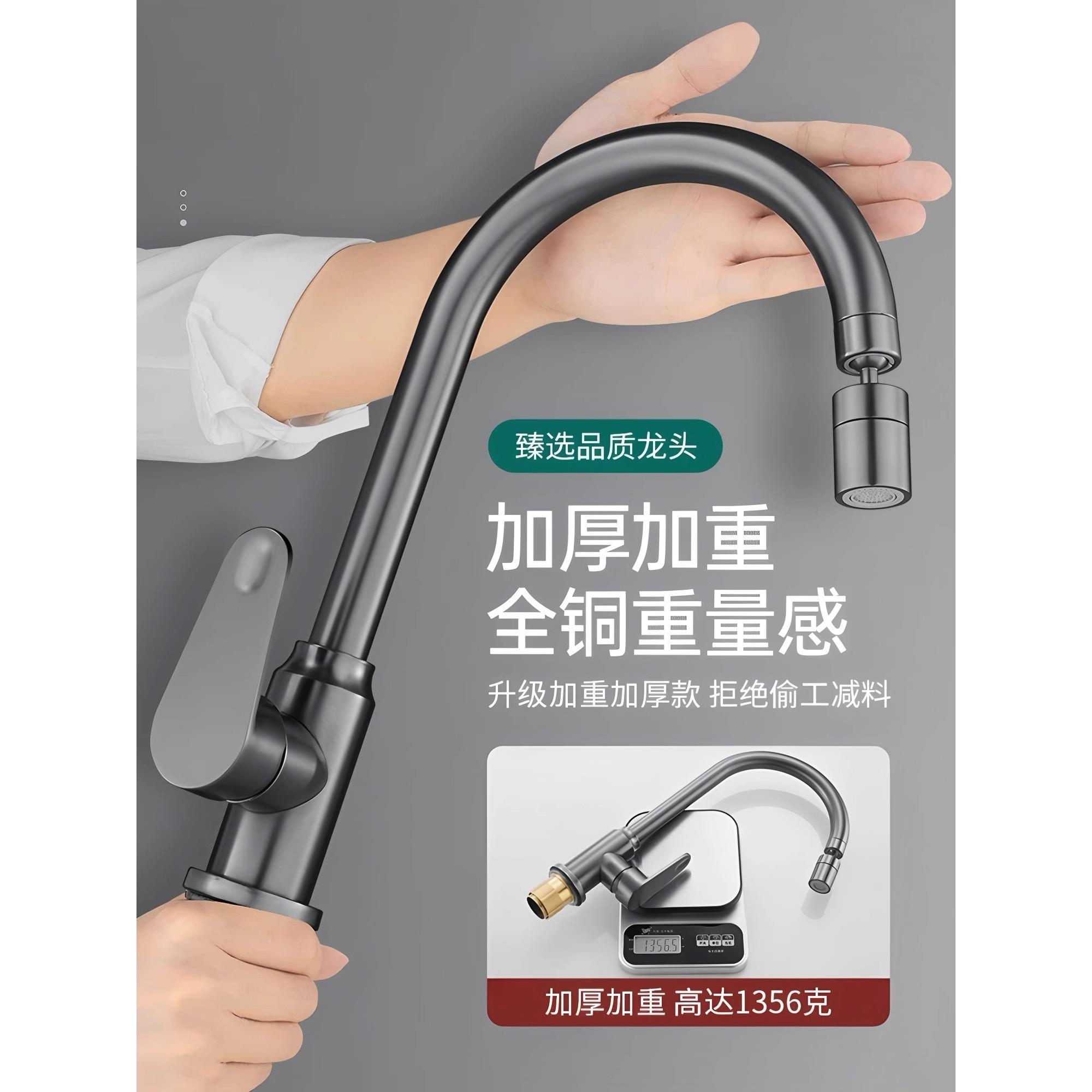 精铜厨房水龙头冷热家用水槽洗菜洗手盆洗碗池旋转不锈钢单冷防溅