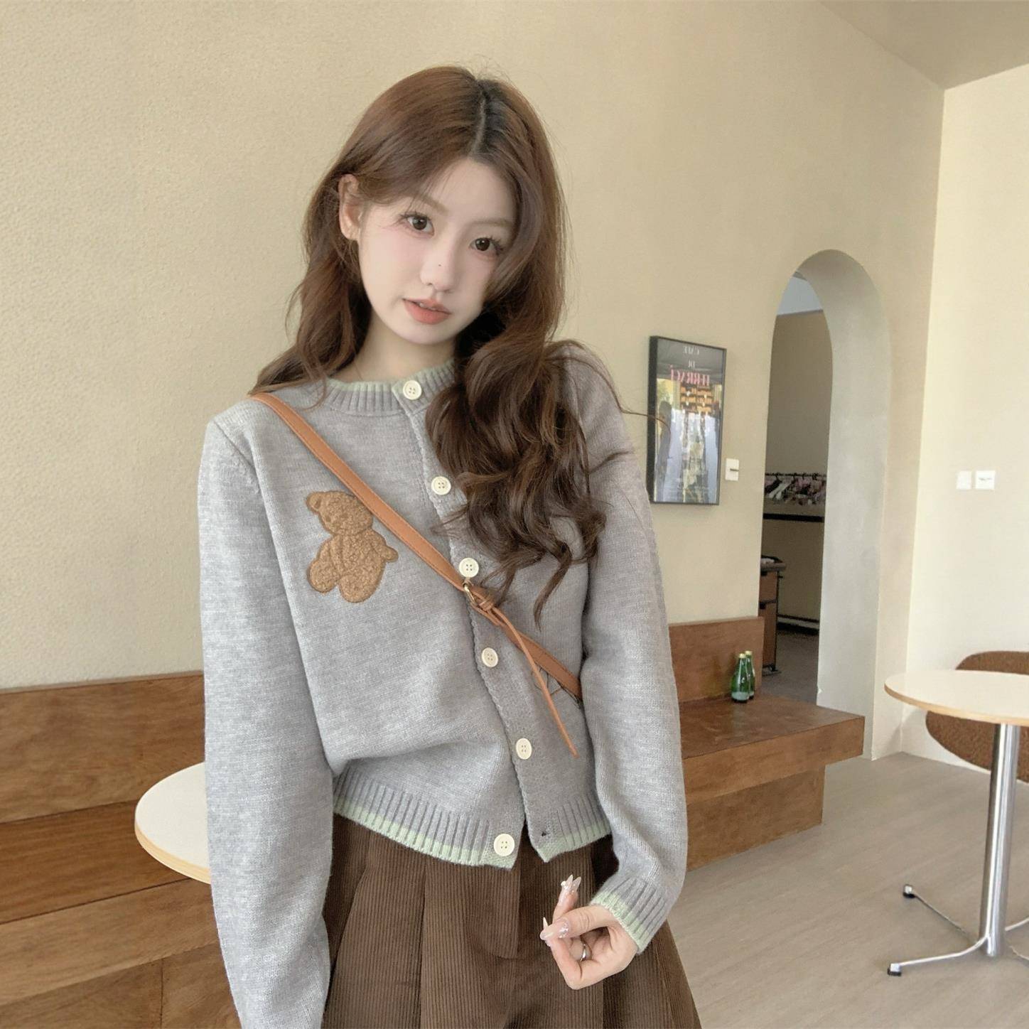 新款 2025秋季 洋气独特上衣H 外套女款 班尼路杏色针织麻花毛衣开衫
