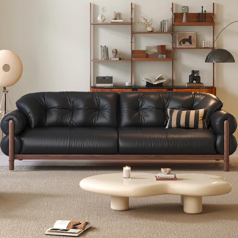 实木沙发客厅2025新款 直排现代简约家用真皮大小户型北美黑胡桃木
