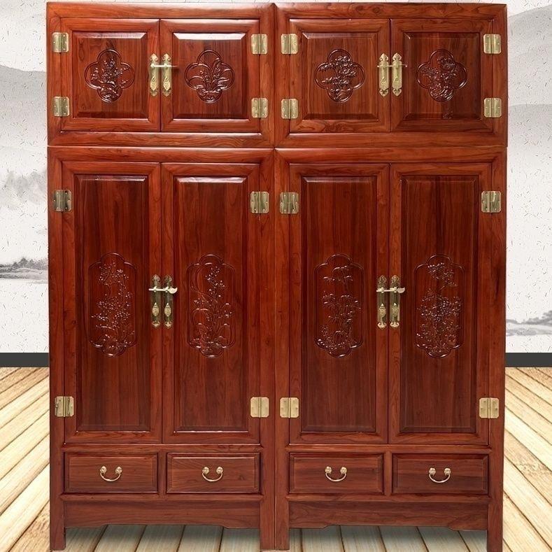 老榆木顶箱柜四门大衣柜卧室实木衣橱单卖中式 顶部储物收纳柜加高