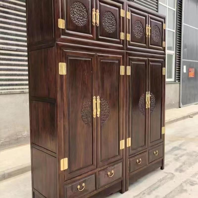 彷古家俱实木大衣柜南榆木四门组合顶箱柜明清古典中式 雕花收纳柜