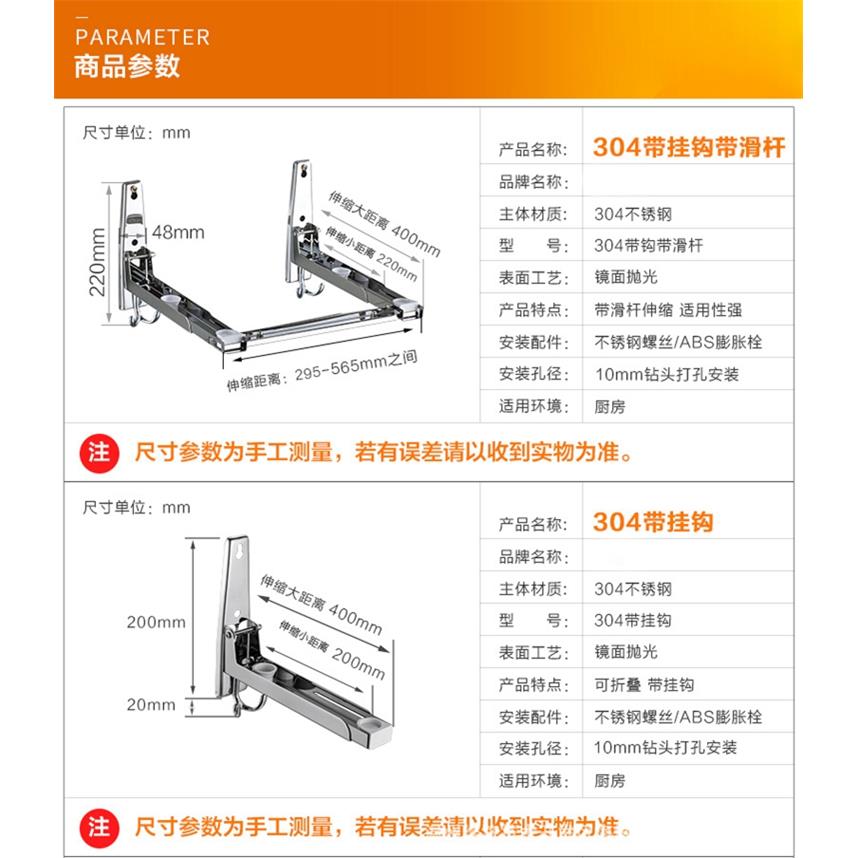 微 厨房壁挂式 带双钩挂墙置物架304不锈钢微波炉置物架打孔式 安装