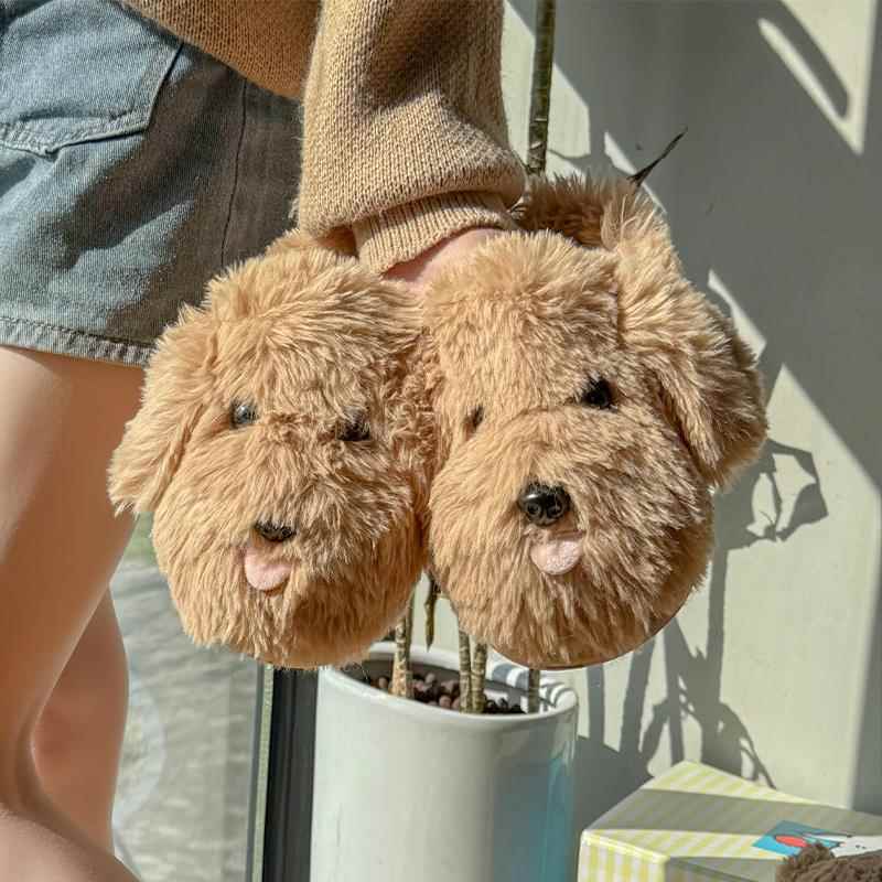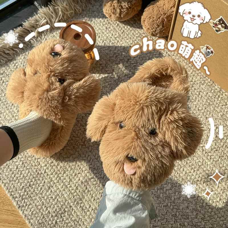 亚麻毛毛拖鞋 西高地马尔济斯厚底棉拖可爱学生情侣防滑春秋 男女款