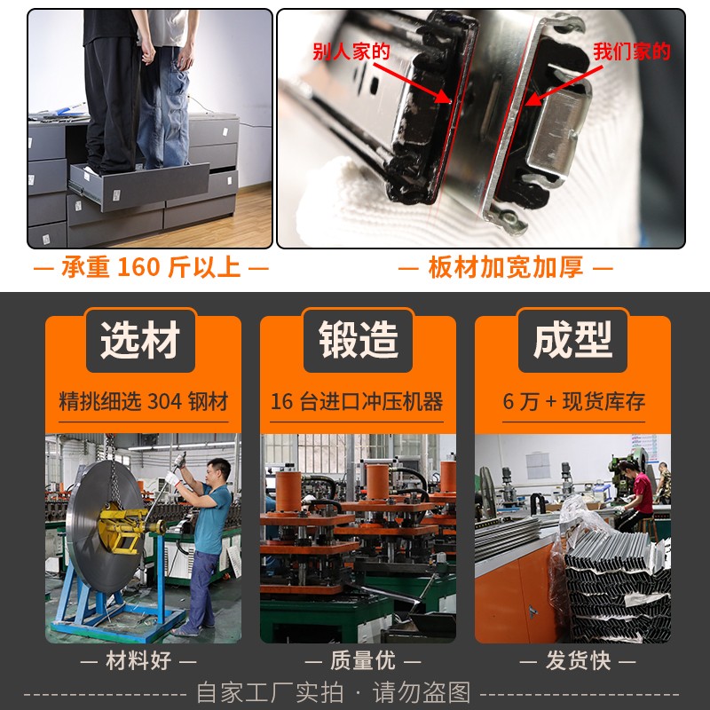 抽屉滑道轨道超厚不锈钢静音三节轨导轨衣柜滑轨阻尼缓冲反弹轨道