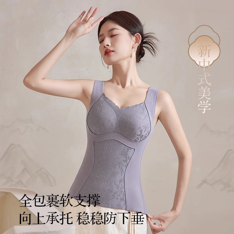 保暖背心免穿文胸加绒打底胸垫加厚内衣秋冬发热女士收腹塑身背心