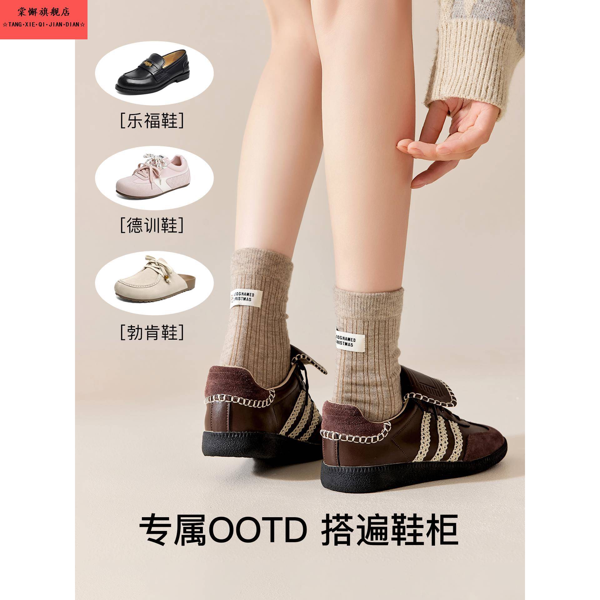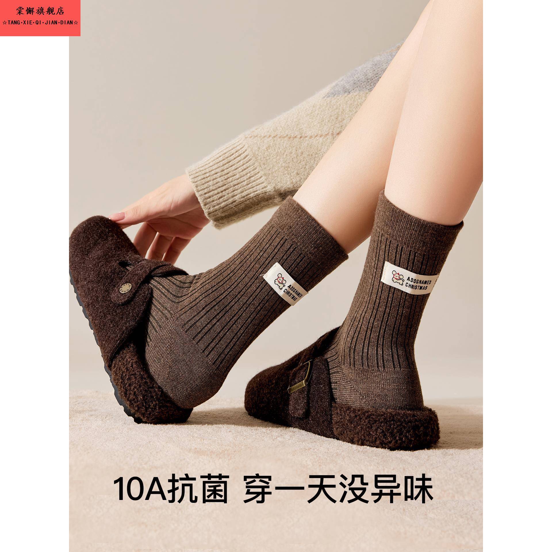 美拉德袜子女秋冬款 长袜 纯棉纱线中筒袜小狗布标堆堆袜搭配勃肯鞋