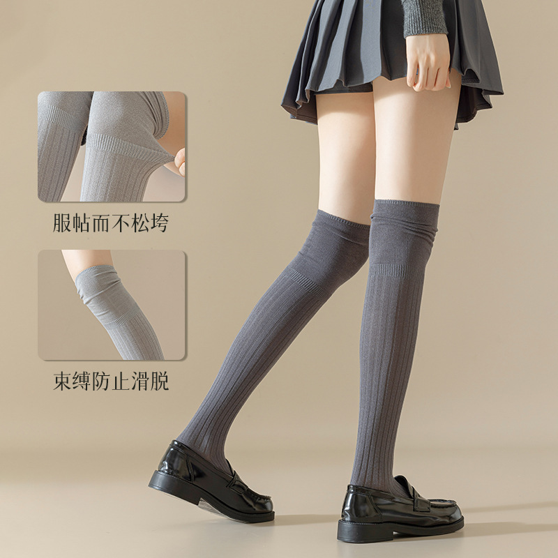 压力小腿袜女半腿jk风中筒堆堆袜配靴子长靴小皮鞋 灰色秋冬长筒袜