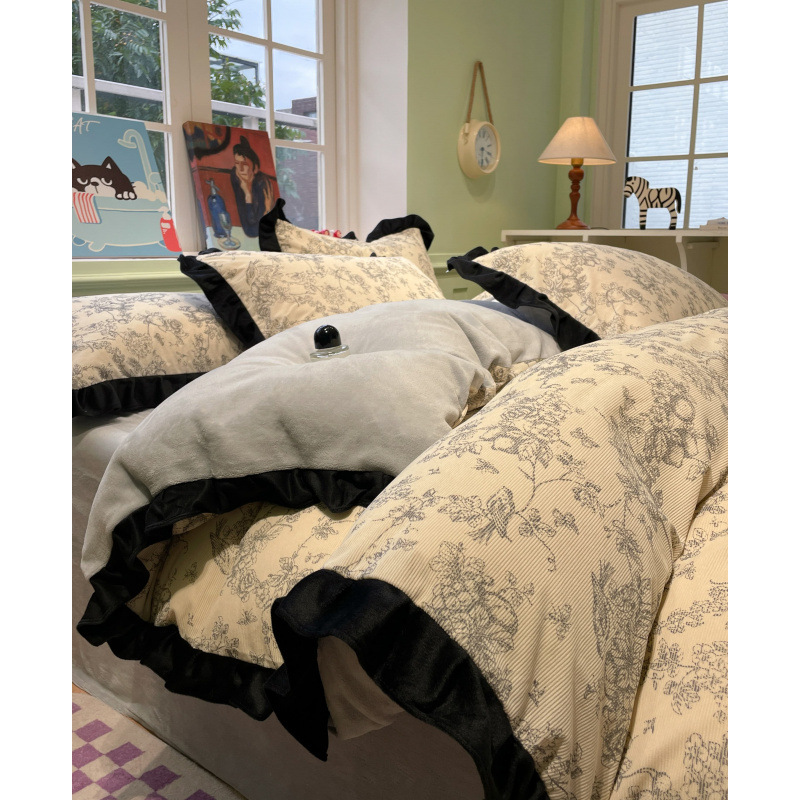 a类水洗棉四件套全棉被套纯棉床笠套件可定制柔软格子简约双面