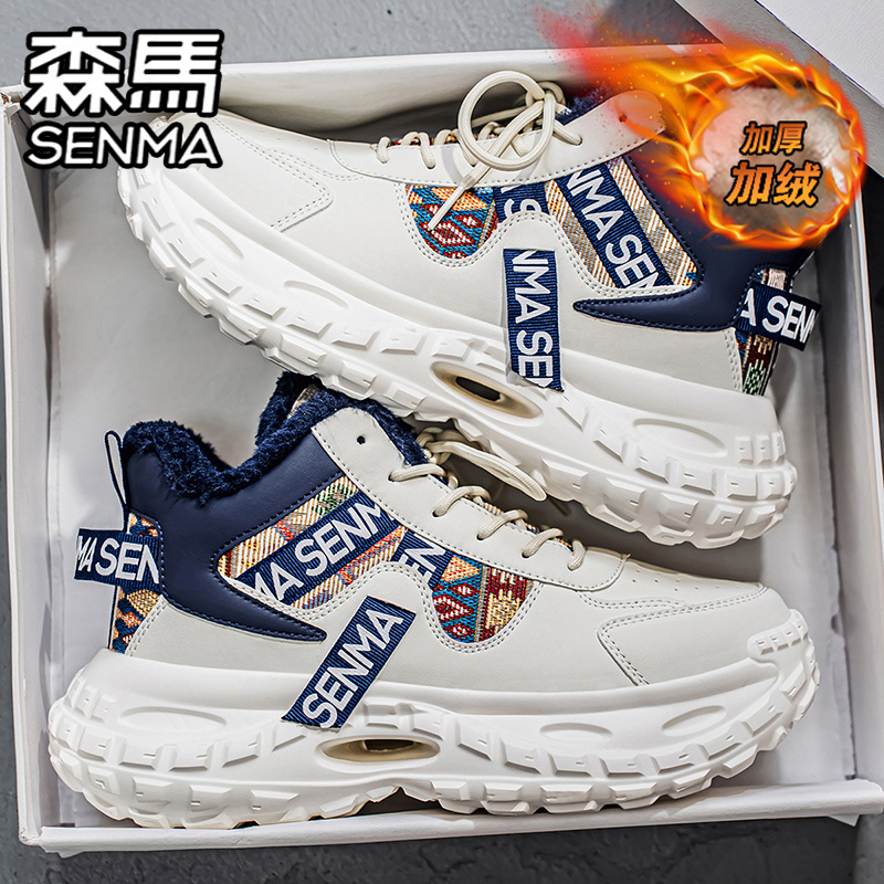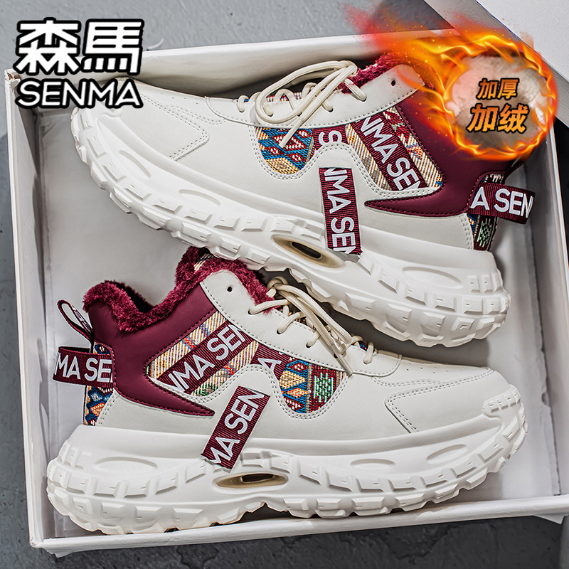 老爹潮鞋 森马高帮男鞋 运动休闲厚底增高爆款 加绒加厚保暖棉鞋 冬季