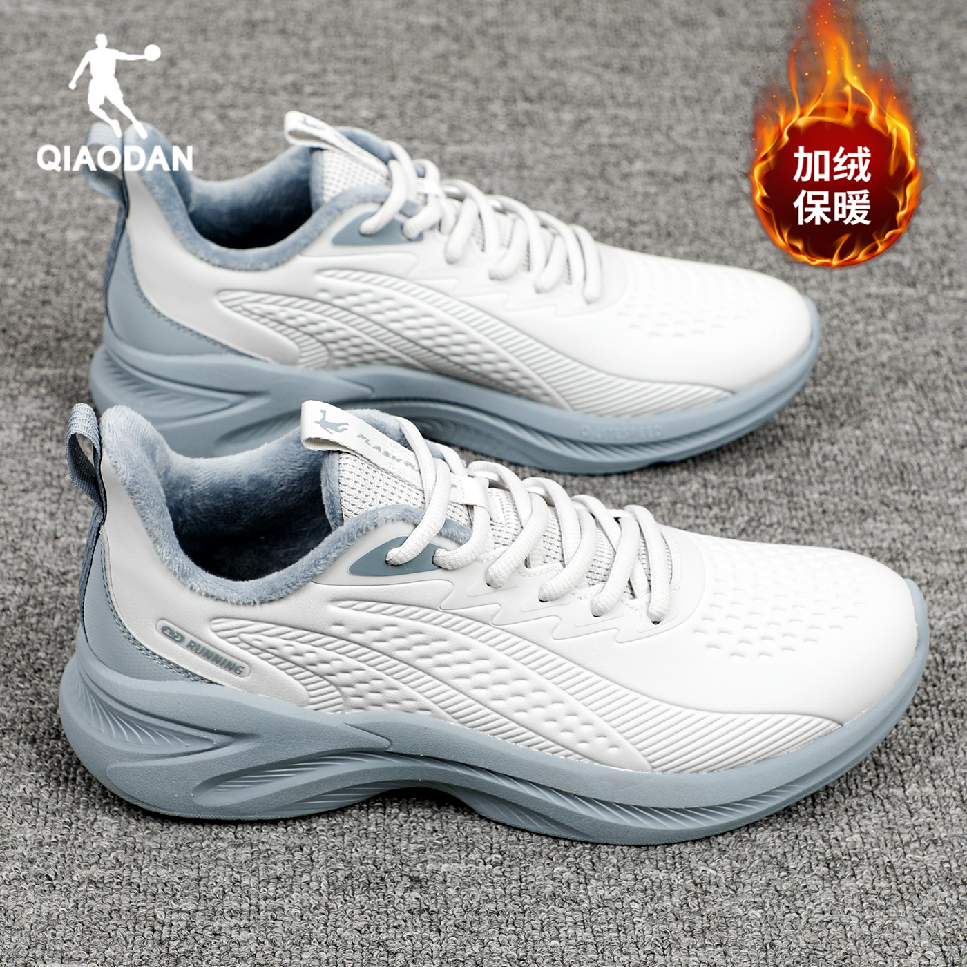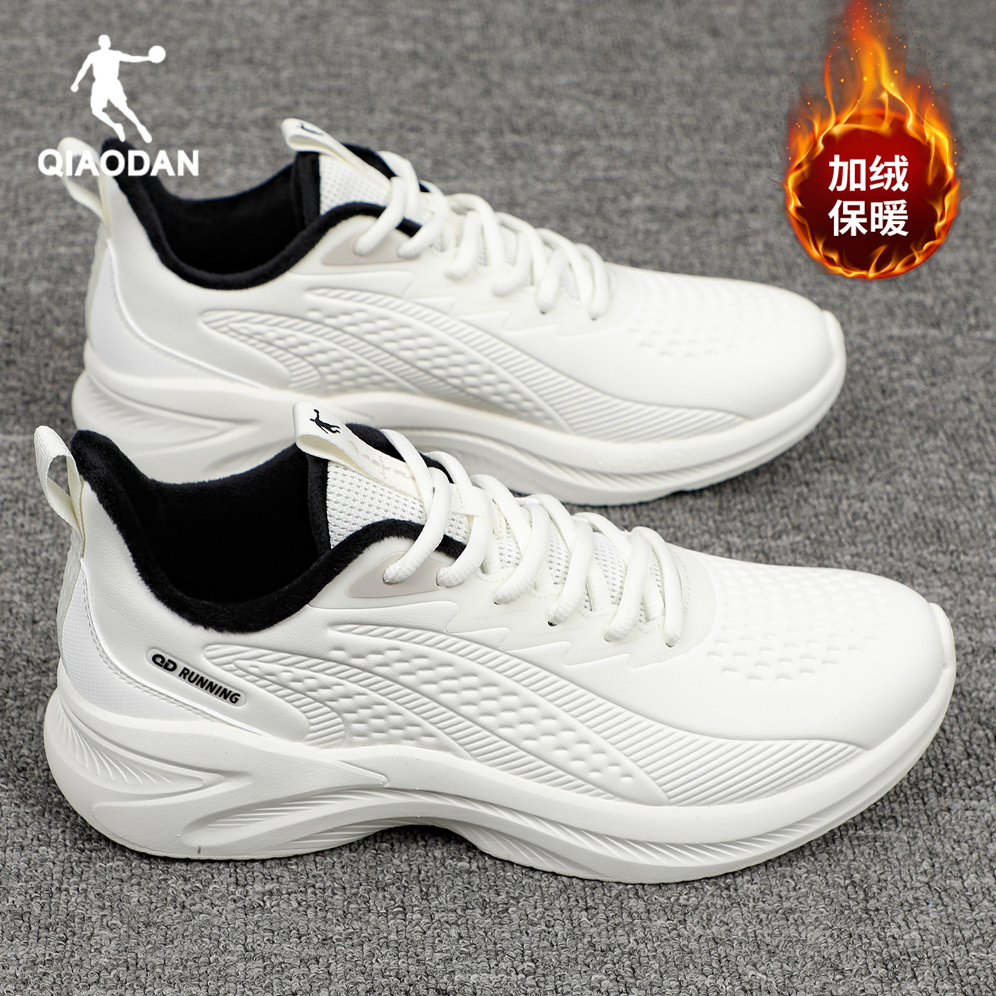 2025新款 小白鞋 冬季 加绒保暖二棉鞋 乔丹运动鞋 皮面防水跑步鞋 男鞋