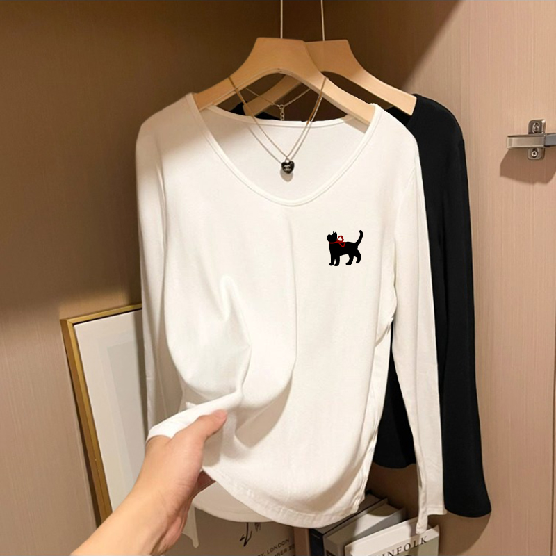 今年流行爆款 春秋纯棉长袖 2025新款 白色打底衫 上衣 t恤女宽松大码