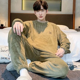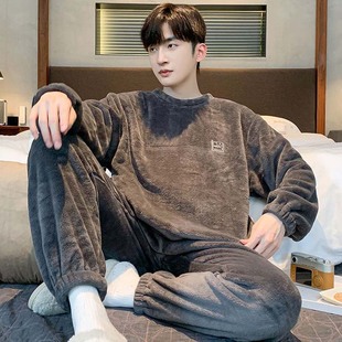 睡衣男士 2025新款 冬季 秋冬款 法兰绒家居服 加绒加厚大码 珊瑚绒男款