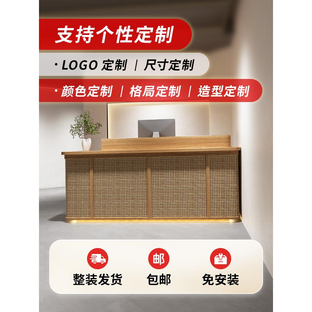 店吧台桌收银台民宿前台接待藤编饭店餐饮茶叶酒店 服装 新中式 女装