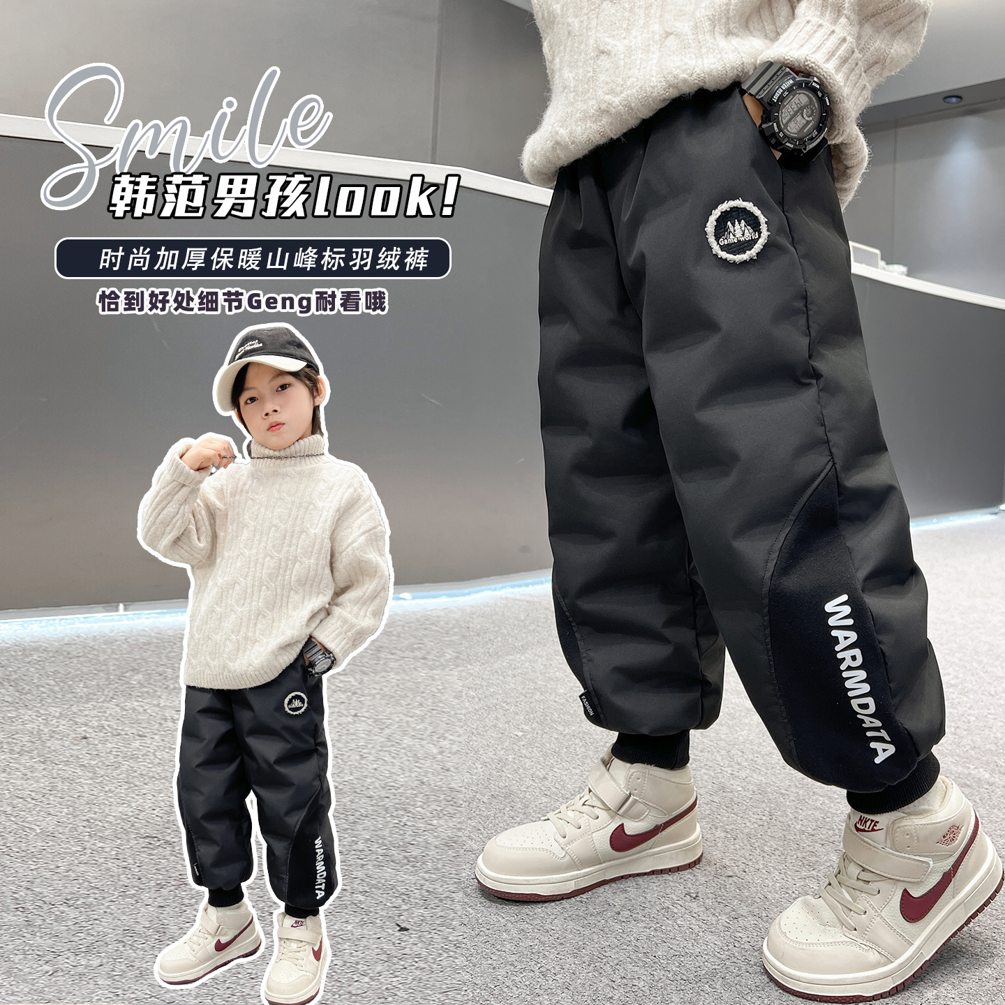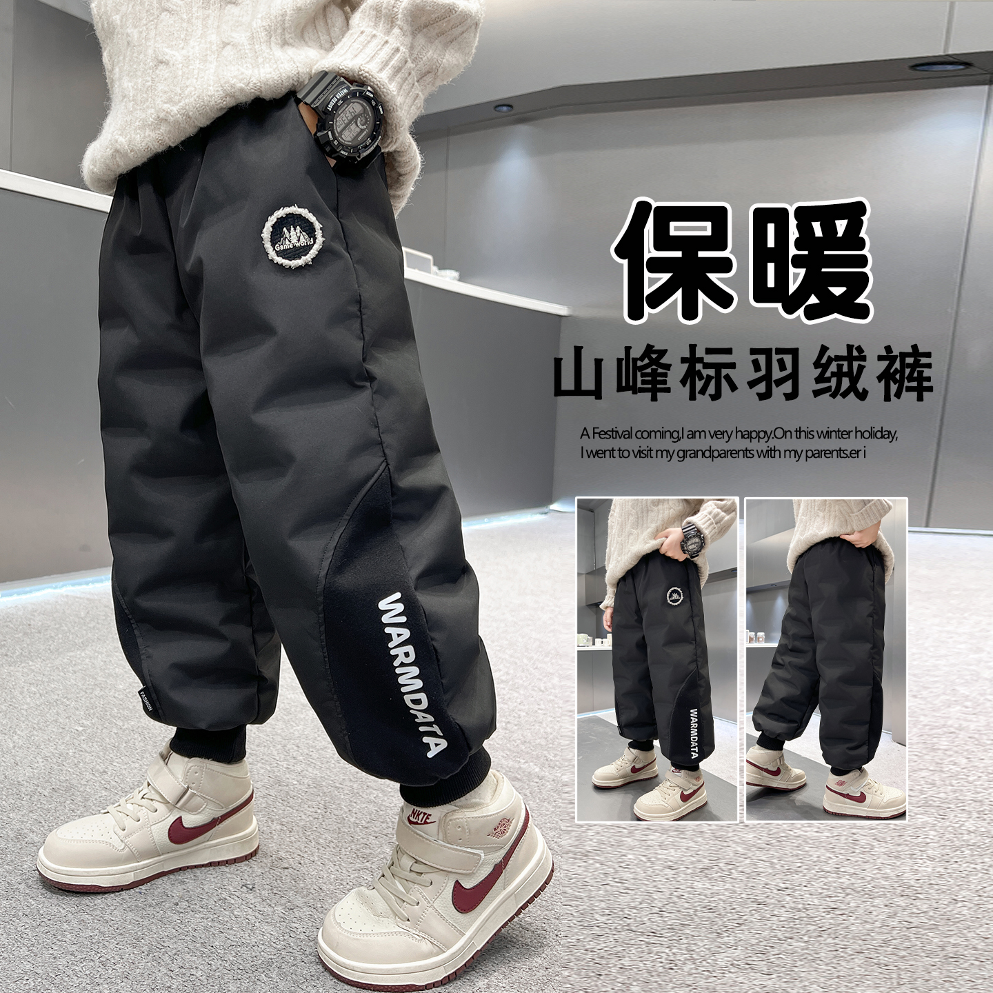 束脚裤 男童羽绒裤 中大童男孩外穿冬季 儿童加厚保暖长裤 子2025新款