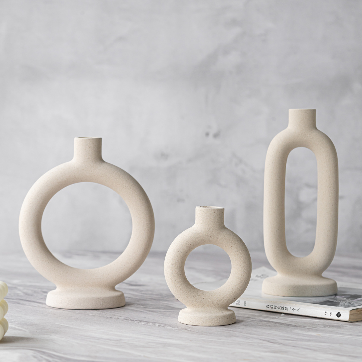 热卖 饰桌面摆件节日氛围道具 米白色素烧陶瓷烛台in风北欧家居装
