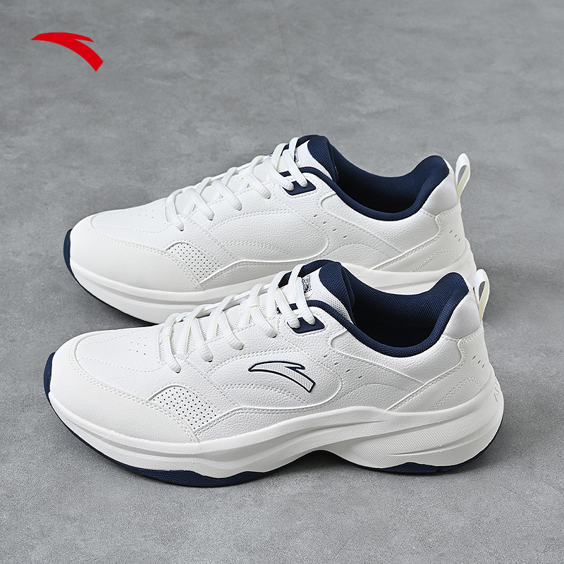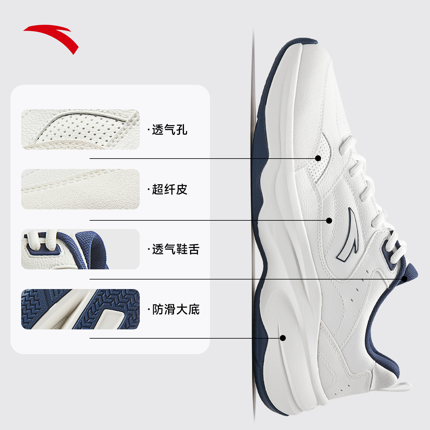秋季 新款 官方正品 安踏男鞋 跑步鞋 男款 黑色皮面防水男士 子男 运动鞋