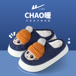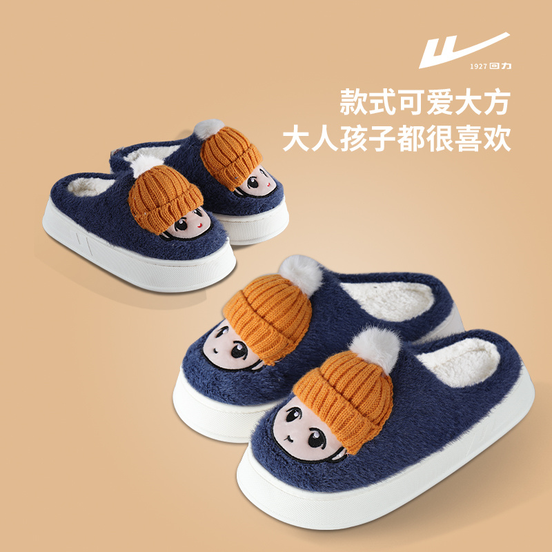 情侣 厚底防滑软底室内棉鞋 回力棉拖鞋 亲子儿童秋冬保暖家居拖鞋