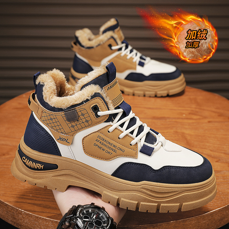 冬季 加绒靴子百搭高帮休闲皮鞋 男鞋 潮流男士 韩版 马丁靴男2025新款