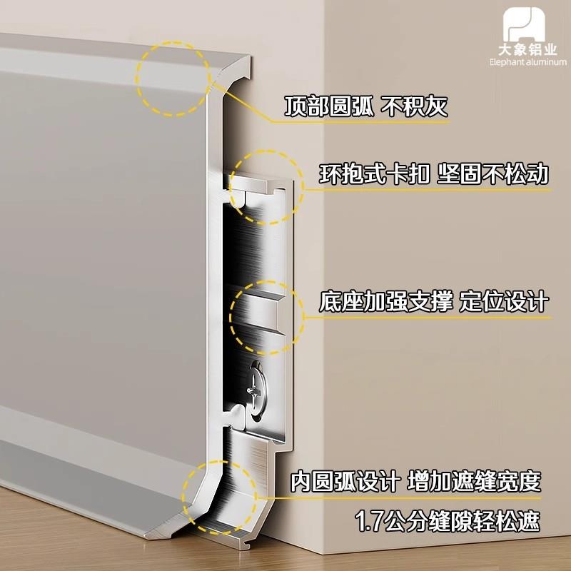 奶油风铝合金踢脚线6cm金属不锈钢新型卡扣地脚线极简超薄贴脚线