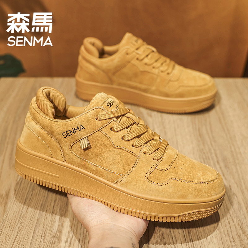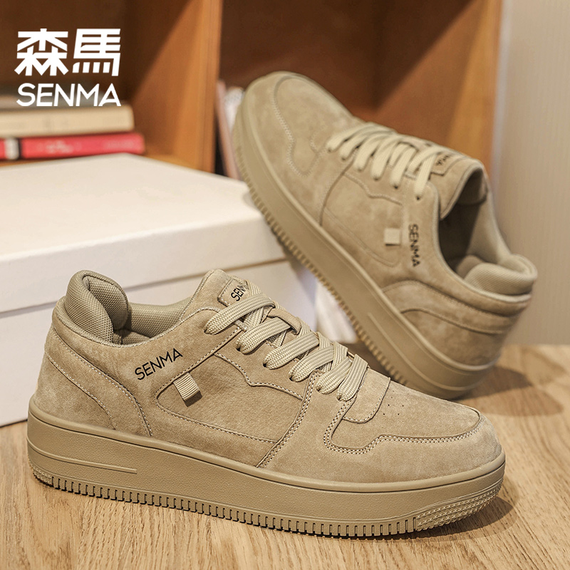 学生低帮运动真皮高级感小白潮鞋 百搭白色休闲板鞋 子 秋季 森马男鞋
