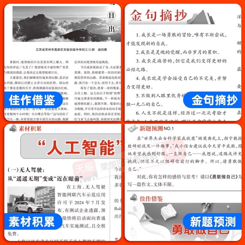 大全初一初二三高分金句摘抄r 初中生学习报中考考场作文热点预测语文备考冲刺高分作文写作素材模版 中考满分作文2025新版 人教版
