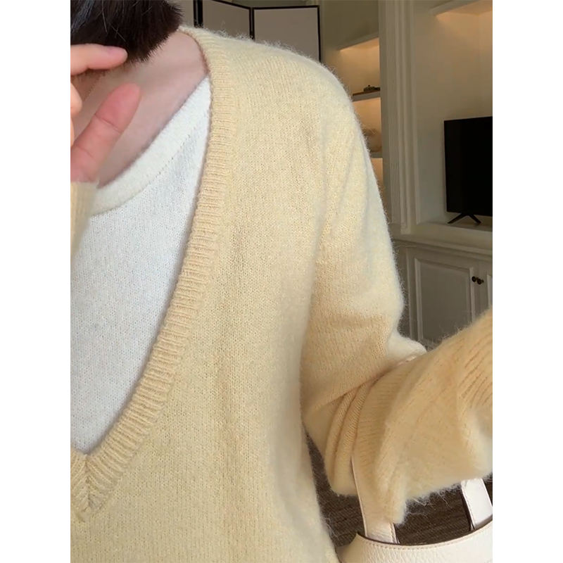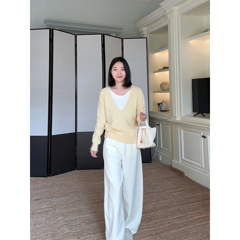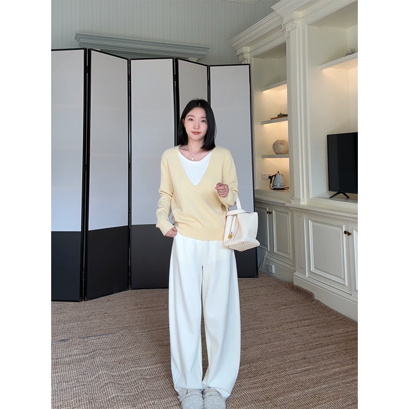 长裤 郭九九呢 温柔风简约假两件撞色宽松毛衣秋冬上衣休闲弯刀裤