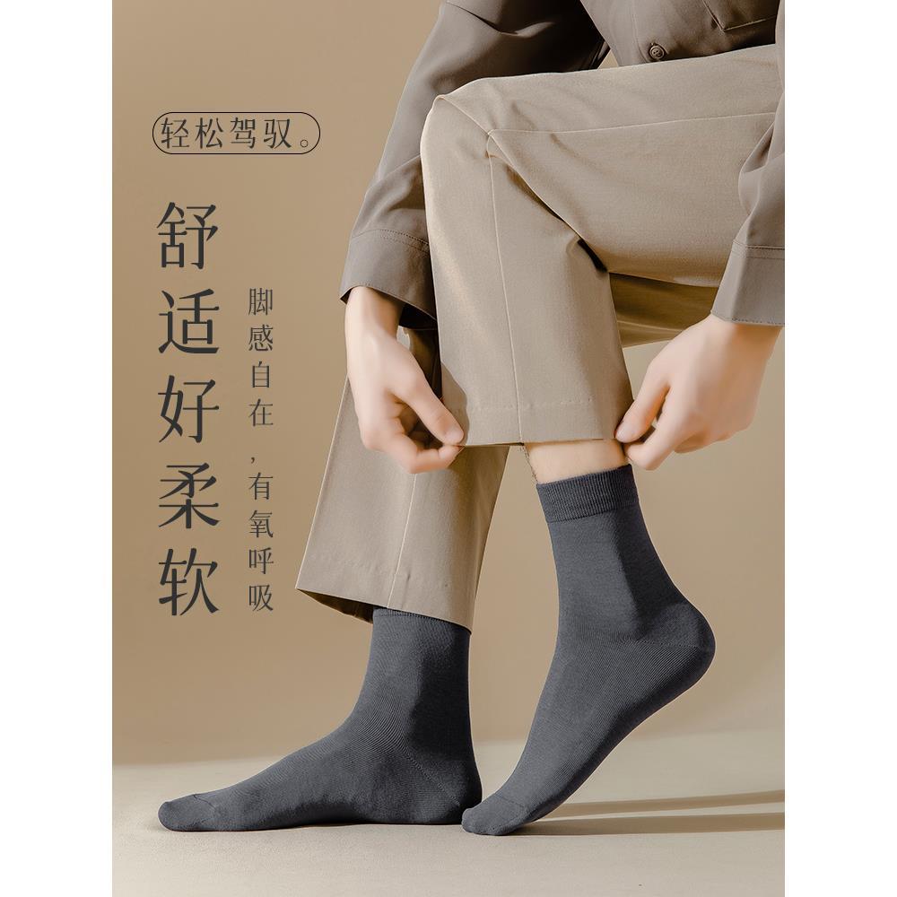 棉袜 商务男款 袜子男中筒袜秋冬防臭透气吸汗长袜黑色长筒男士 皮鞋