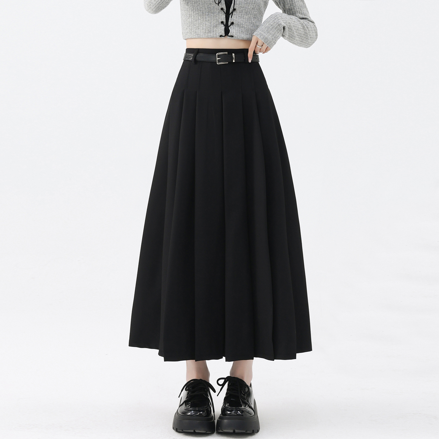 长裙子 小个子a字高腰中长款 西装 裙半身裙秋灰色百褶裙女2025新款