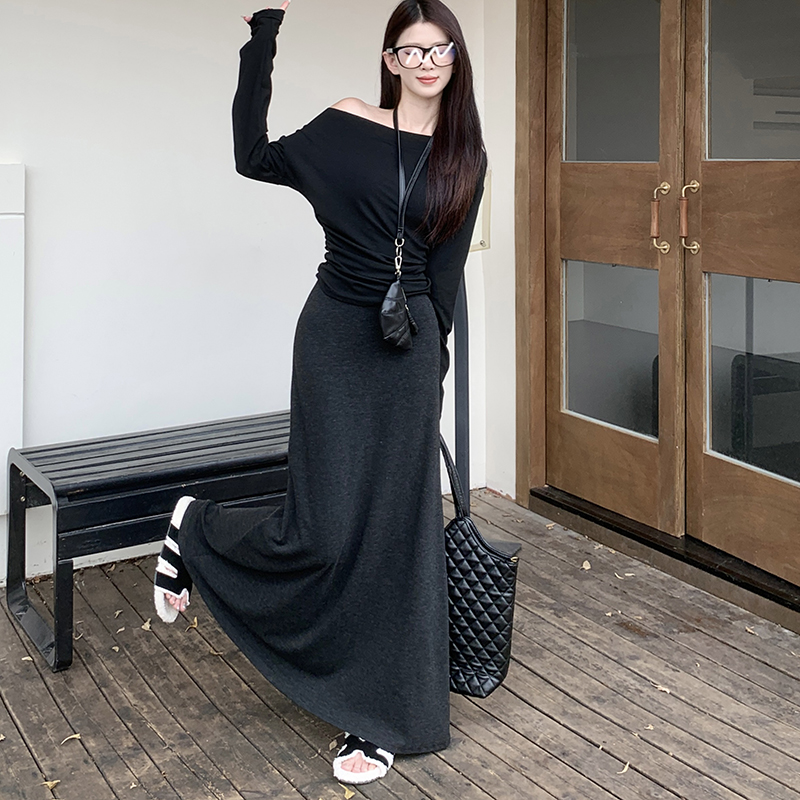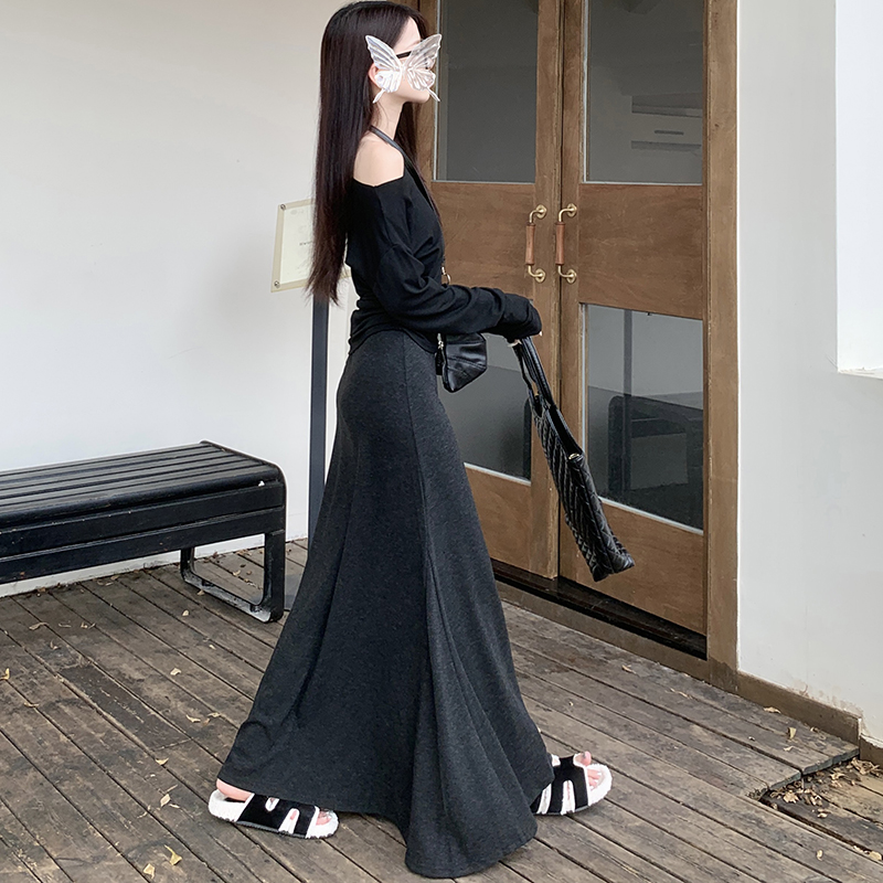 灰色鱼尾裙女秋冬季 半身裙 气质a字包臀裙显瘦遮肉垂坠纯色中长款