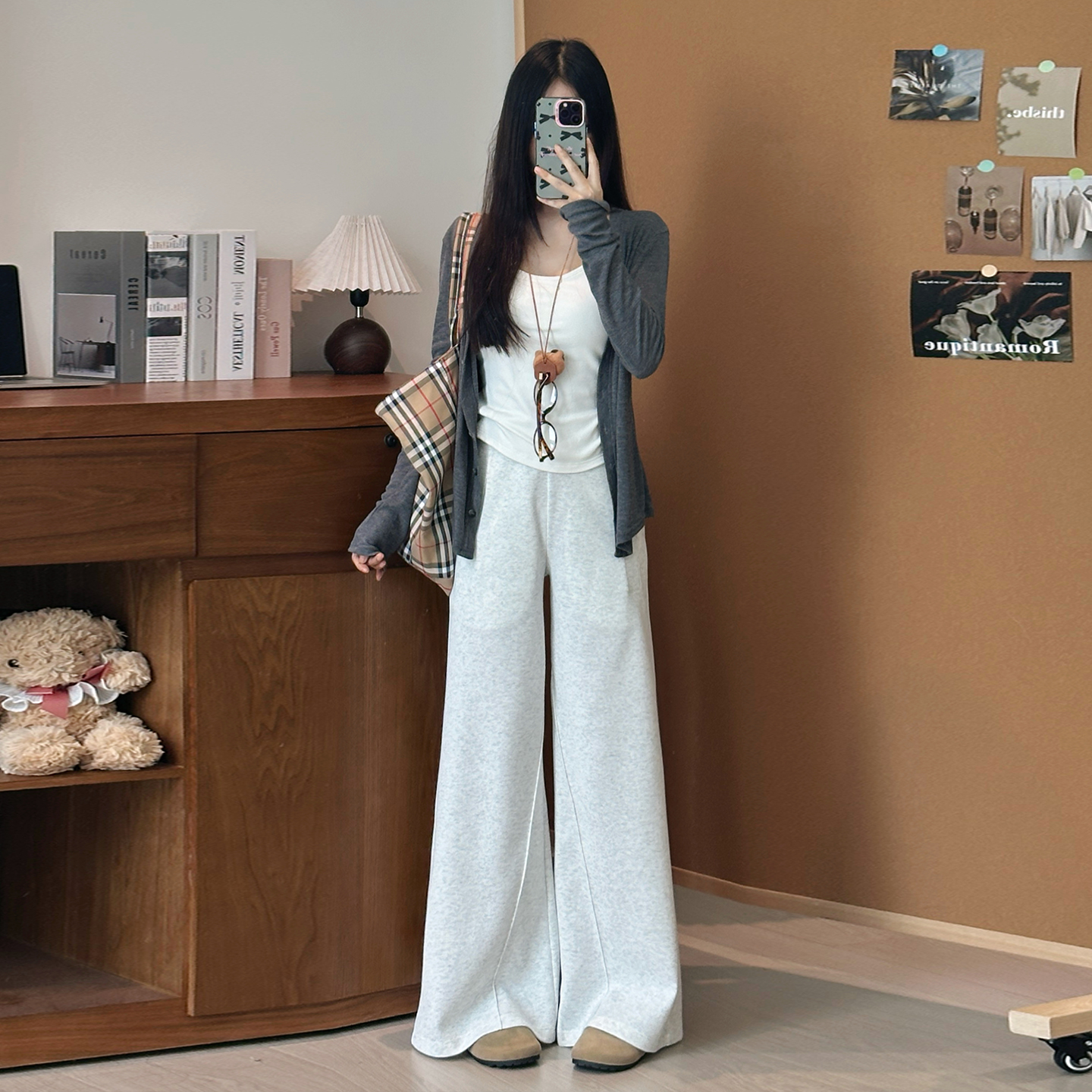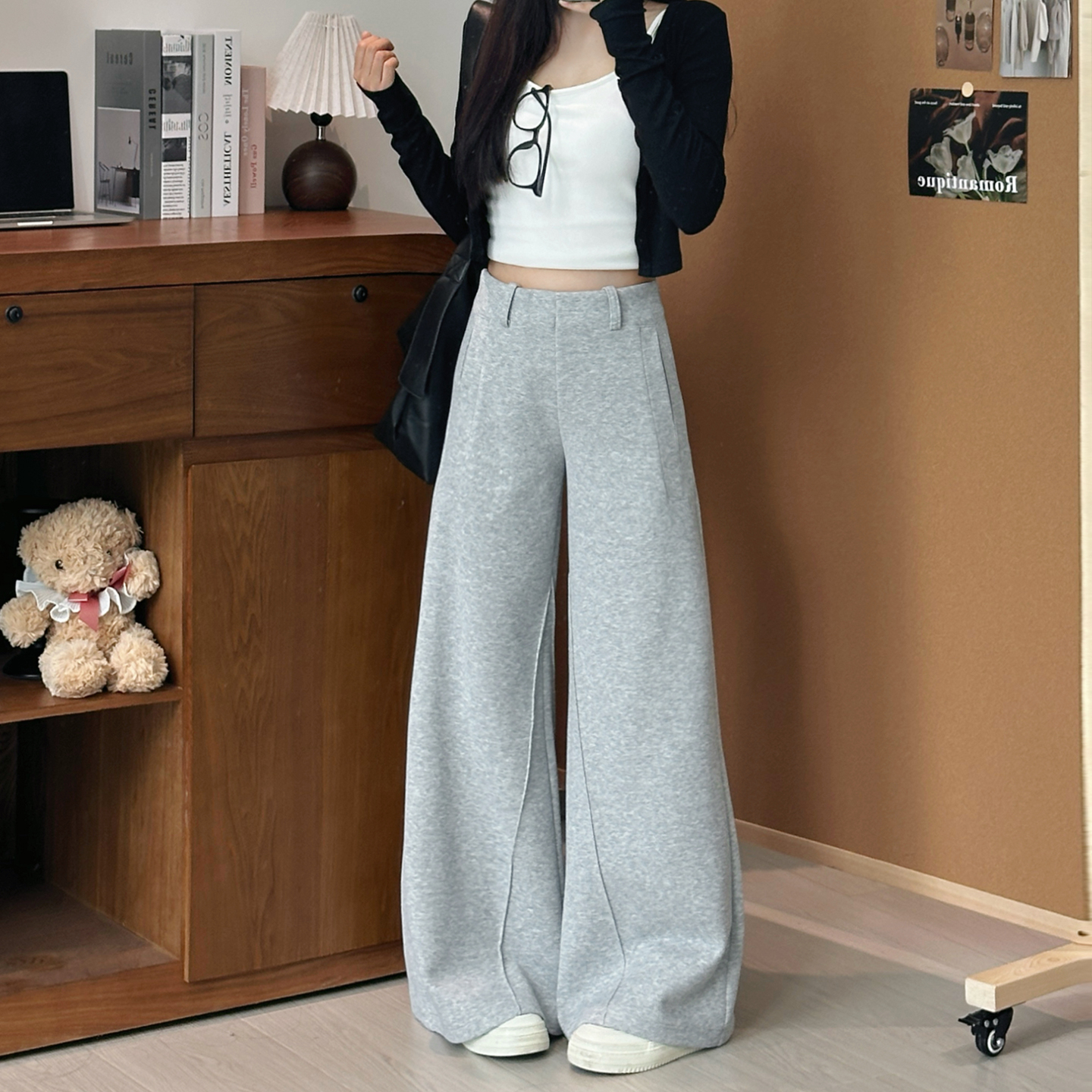 直筒休闲弯刀运动裤 灰色阔腿裤 高腰宽松微喇叭裤 2025新款 女春秋季