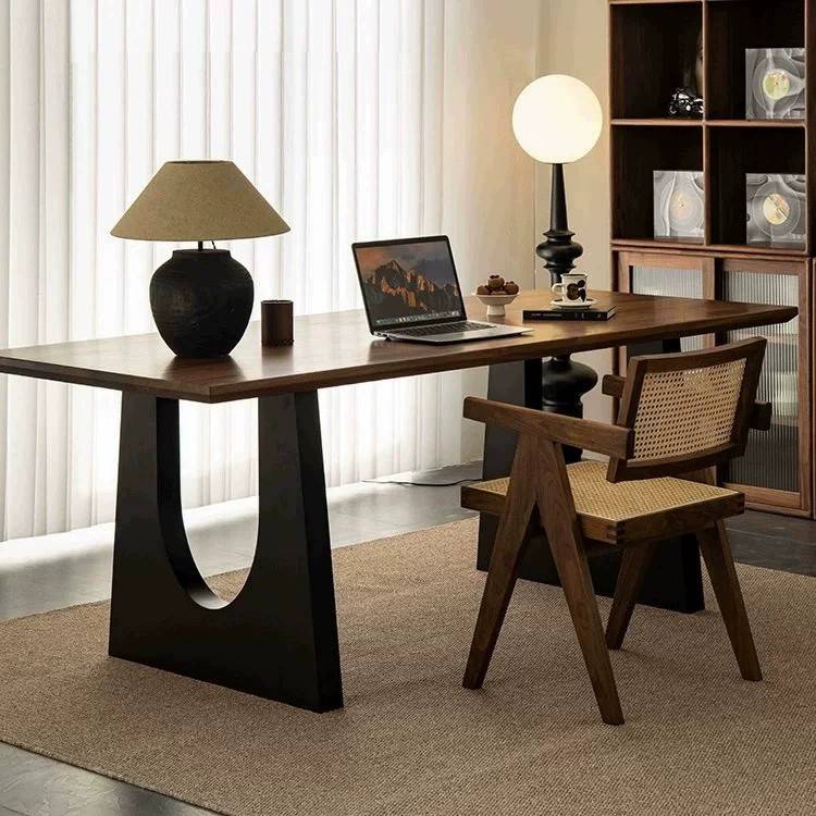 实木办公桌电脑桌书桌简约家用客厅餐桌中古法式 长方形桌椅组合