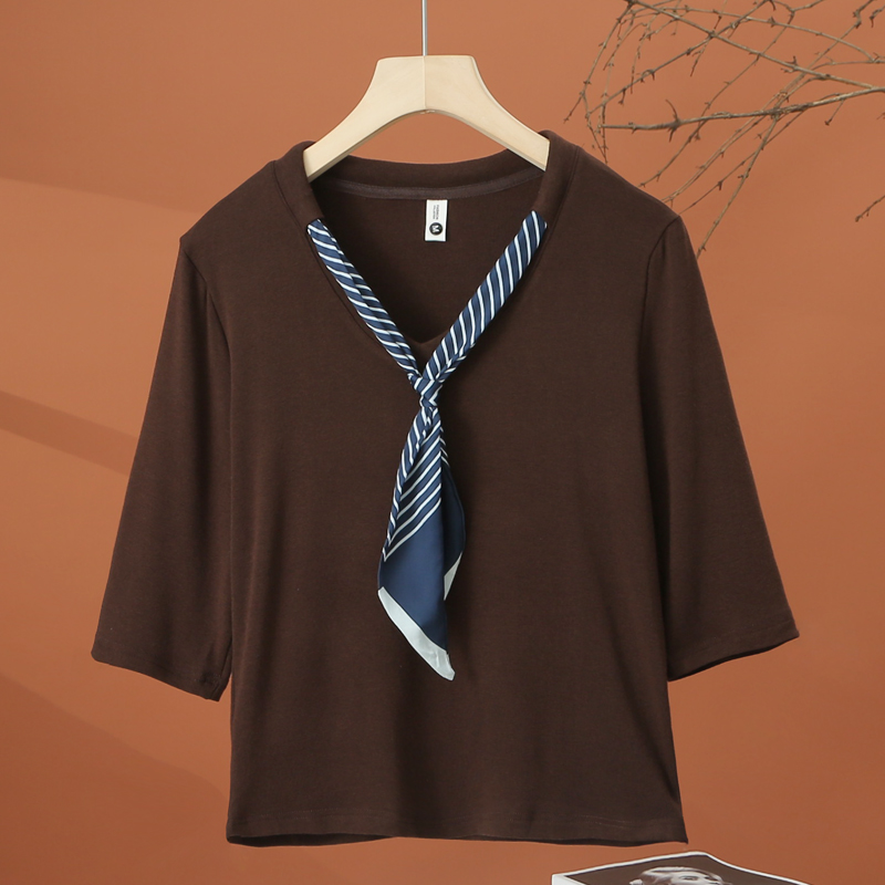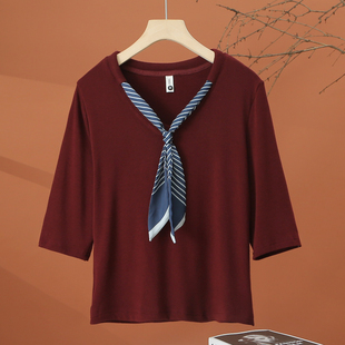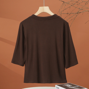t恤女早秋2025新款 女士半袖 洋气内搭打底小衫 修身 上衣 时尚 五分袖