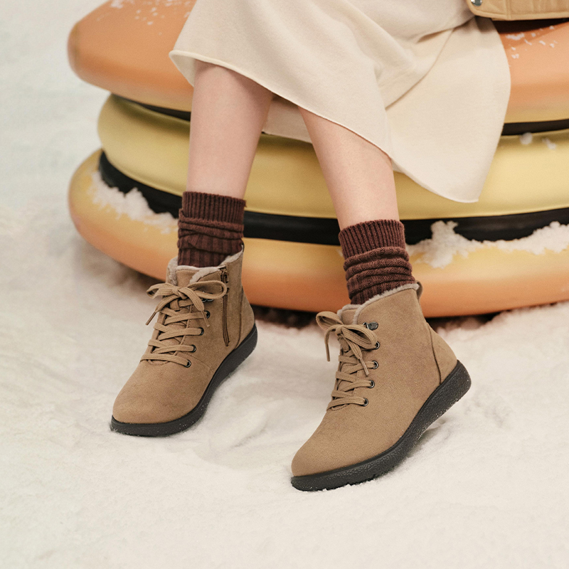 Pansy盼喜日本女鞋 轻便舒适保暖短靴拉链加绒防滑雪地靴秋冬款