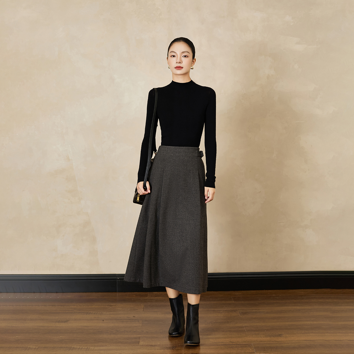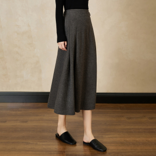 日系复古超好看半身裙子女士春秋装 小个子高腰显瘦夹棉A字裙 新款