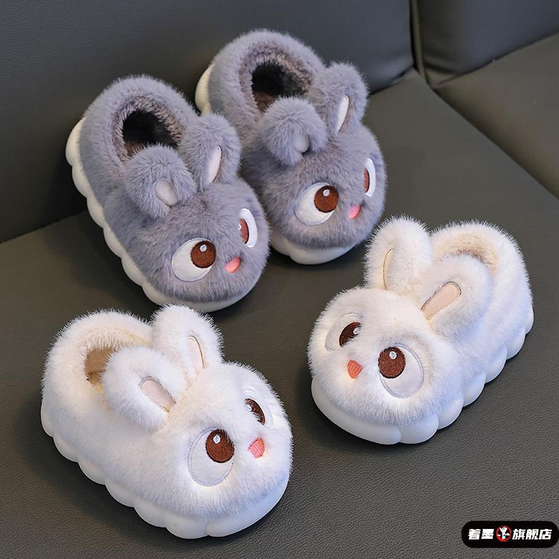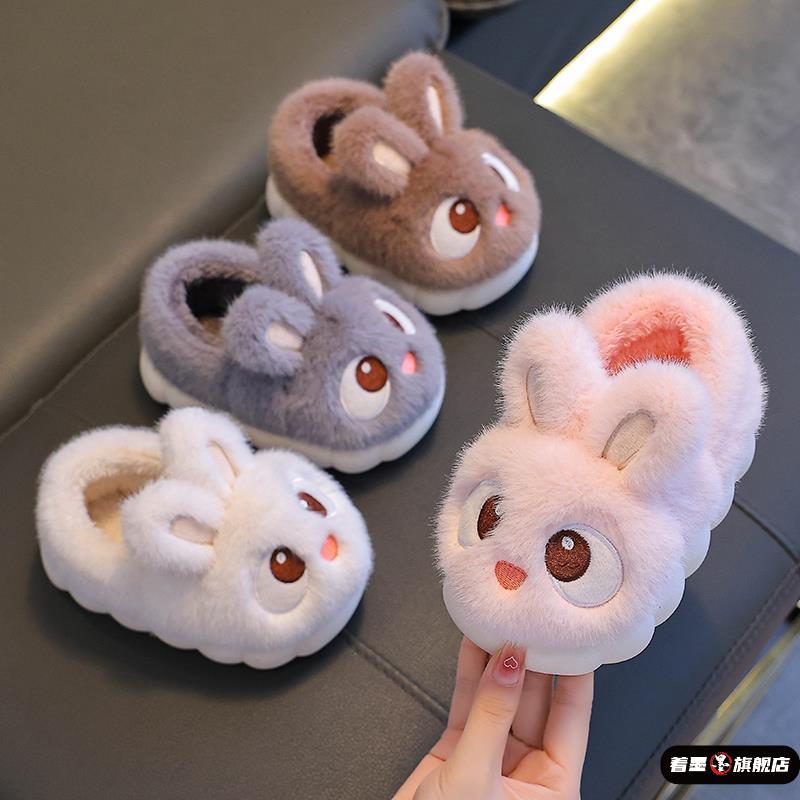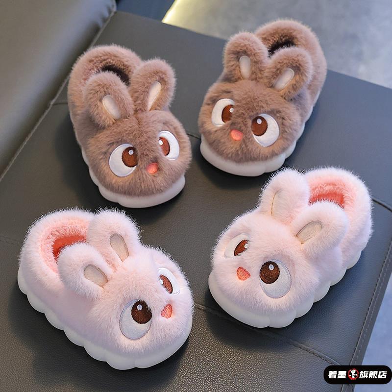 幼儿女童室内毛毛拖鞋 儿童棉拖鞋 宝宝棉鞋 家居鞋 包跟可外穿冬季