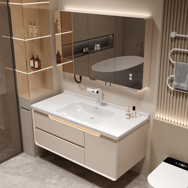 奶油风陶瓷一体盆浴室柜卫生间洗手盆洗脸盆柜组合洗漱台盆卫浴柜