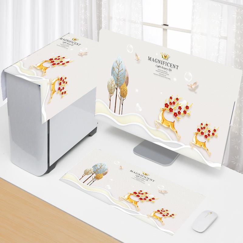 电脑防尘罩主机箱盖布2427寸显示器键盘防尘布套装 屏幕布艺遮灰罩
